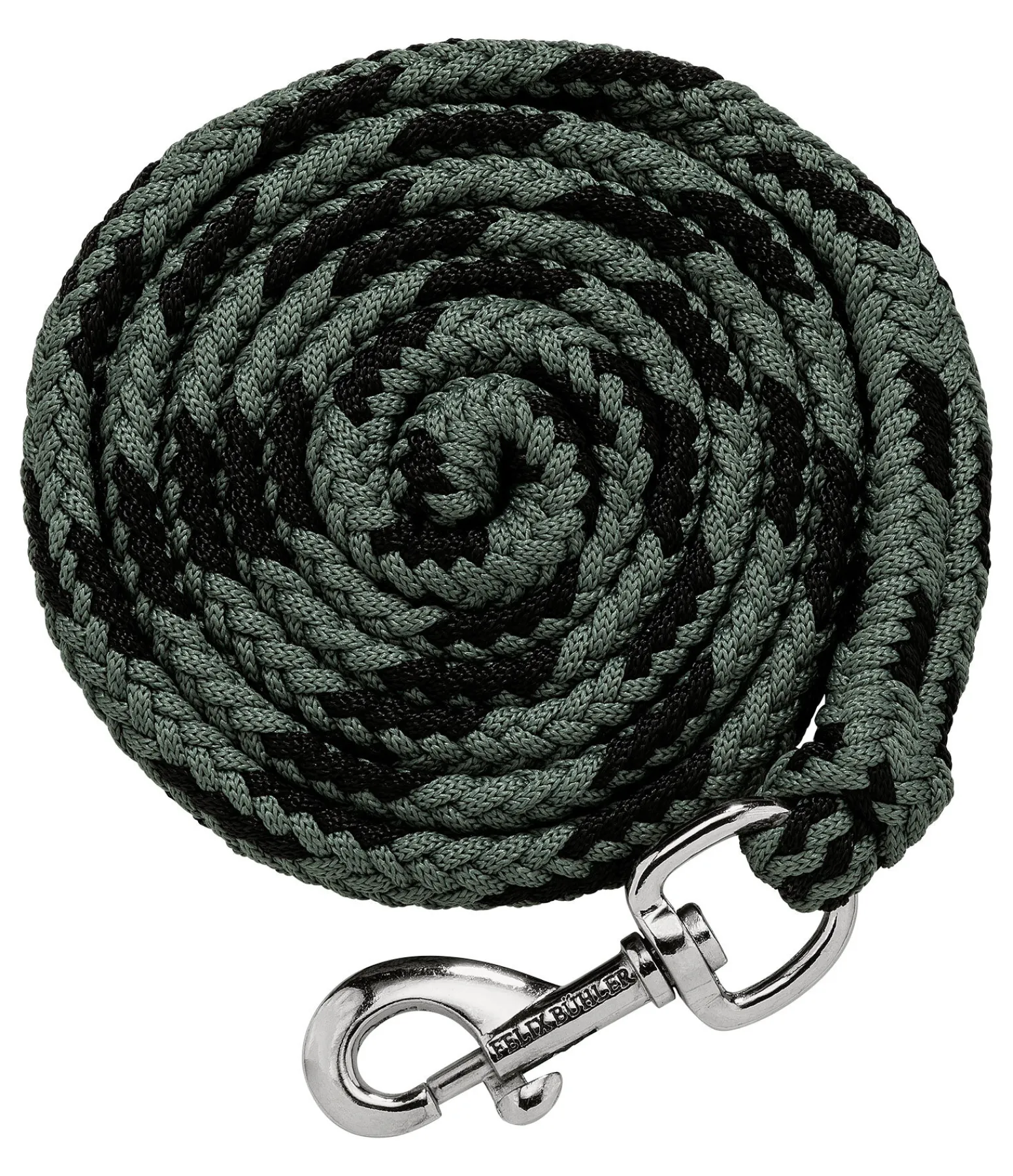 Longe ronde solide et bicolore avec mousqueton. Bouclerie argentée. 2 m. 100 % polyester. Parfaitement assortie au licol 310053.