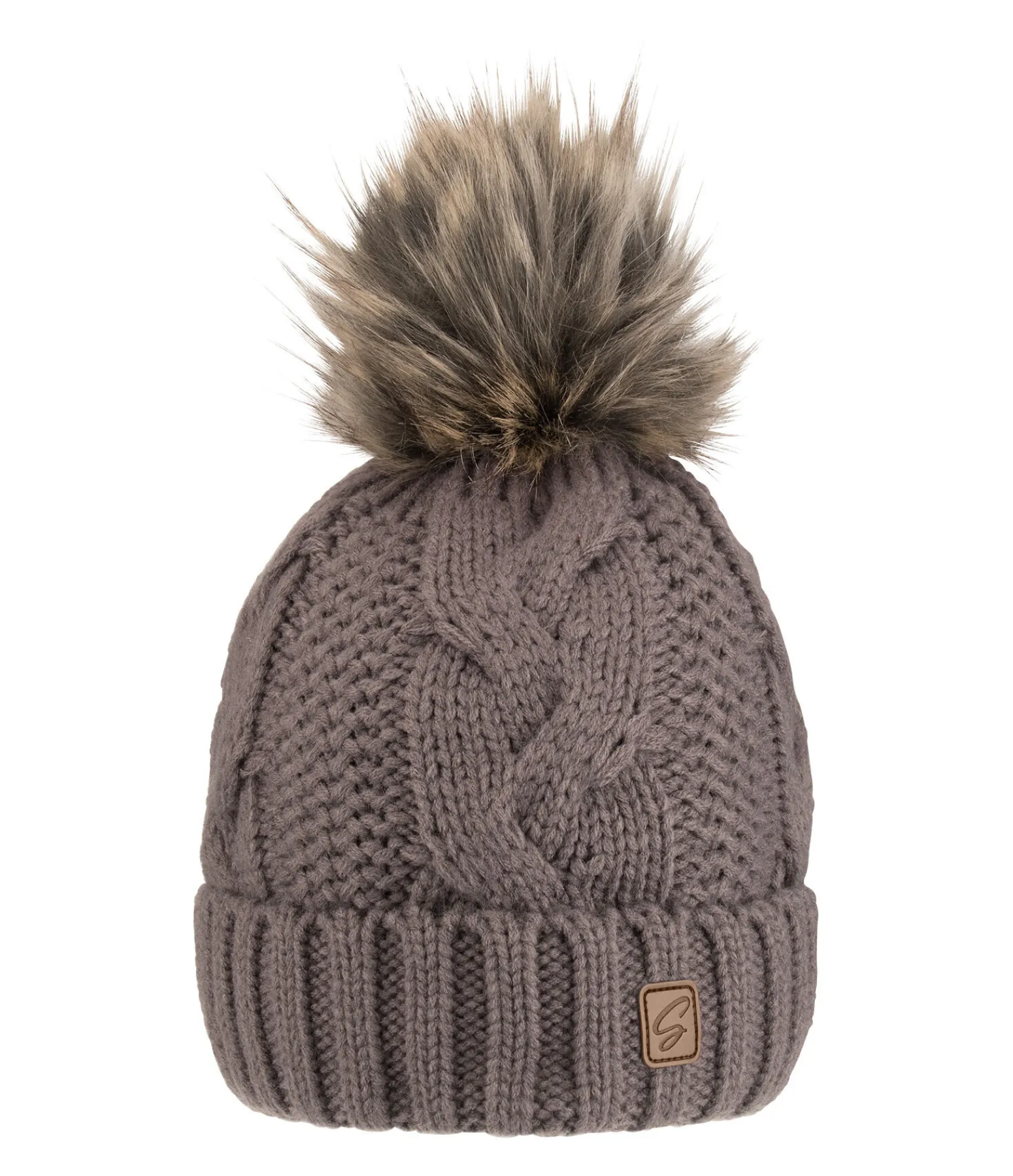 Bonnet douillet en tricot à grosses mailles pour femme avec pompon et discret badge STEEDS à l’avant. Doublure en polaire extra-douce. 100 % polyamide, doublure 100 % polyester.