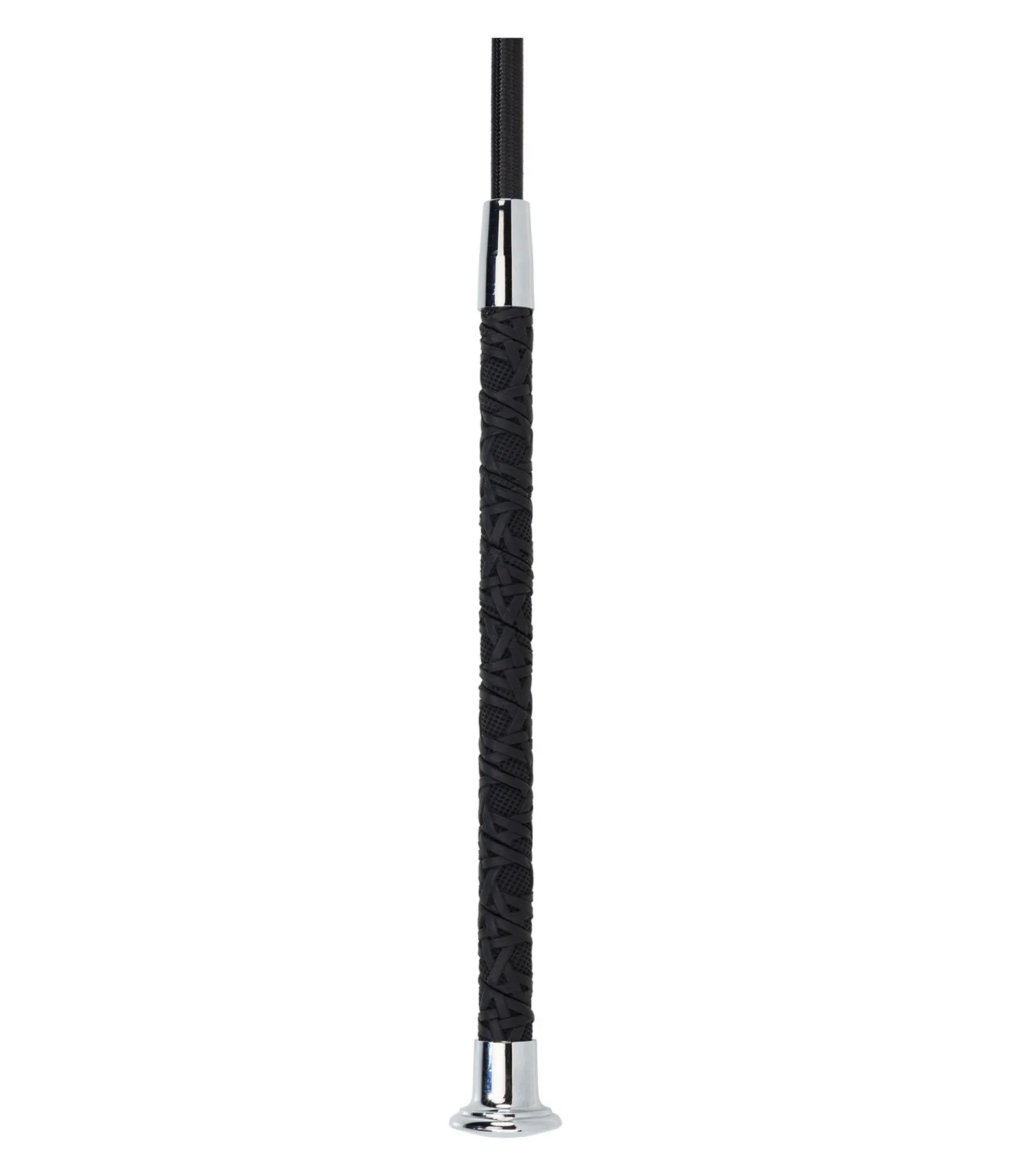 Cravache de dressage avec poignée antidérapante en aspect dentelle. Tige en fibre de verre avec revêtement en nylon.