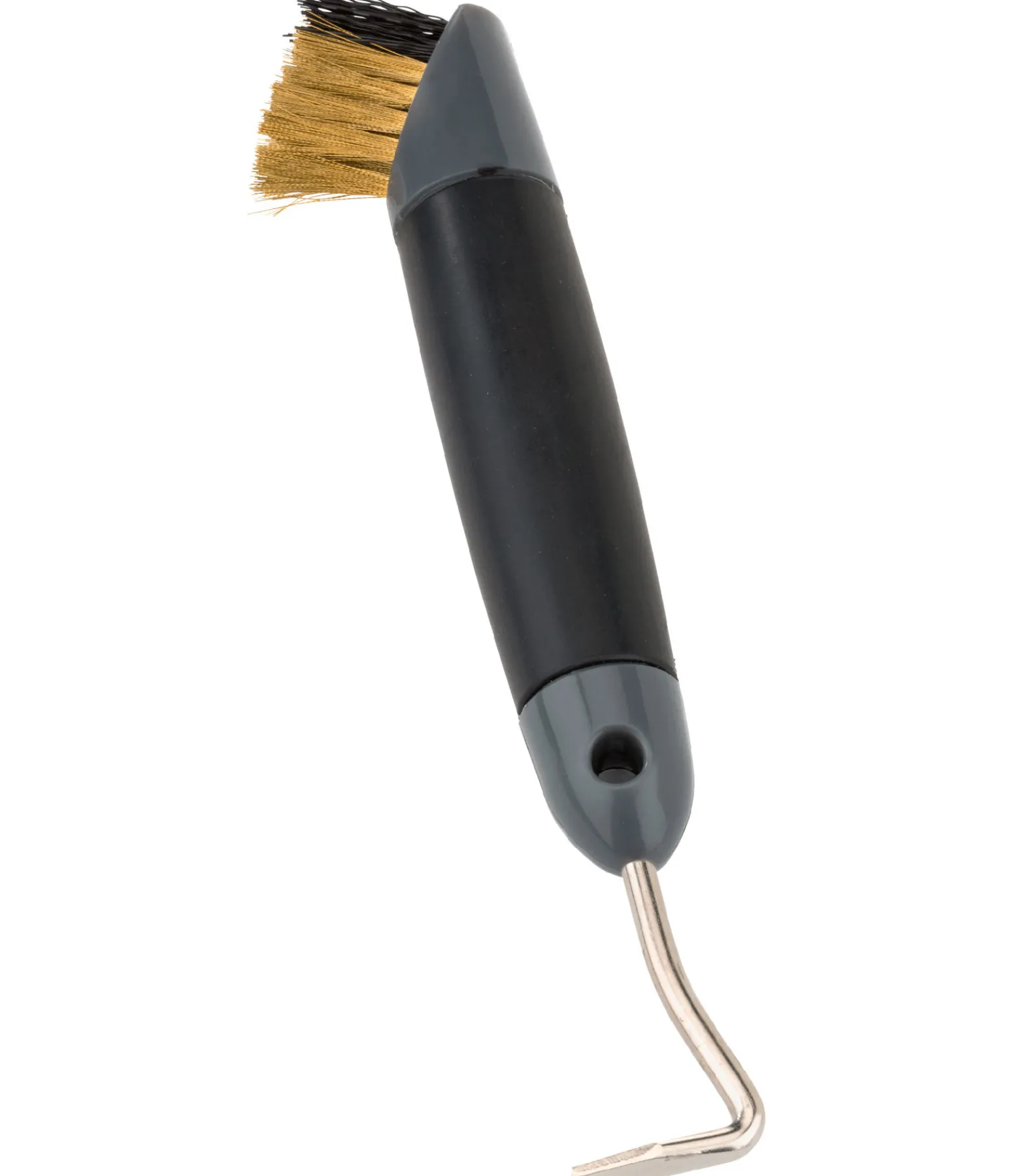 Cure-pied robuste avec poils métalliques et synthétiques. Les poils métalliques permettent d’enlever les saletés tenaces ou incrustées dans le sabot. La poignée antidérapante en caoutchouc permet une bonne prise en main. 22 cm.