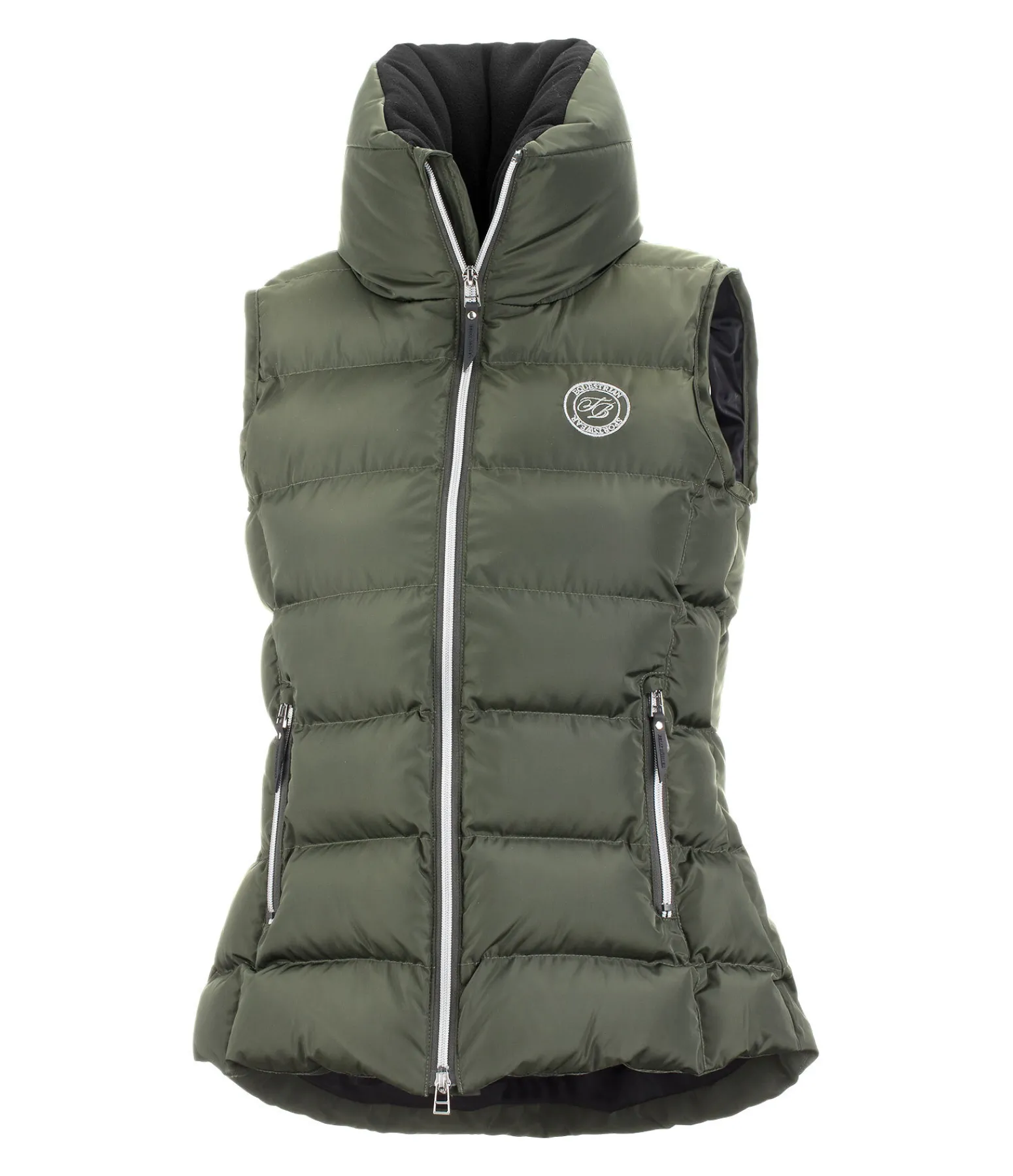 Élégant gilet d’équitation classique avec large col extra haut, chaud et doublé de polaire douce. Coupe plus longue à l’arrière. Rembourrage douillet, fermeture à glissière double sens avec sous-patte et protège-menton, 2 poches zippées devant et 1 poche intérieure zippée. Broderie Felix Bühler sur la poitrine et le col. 100 % polyester.