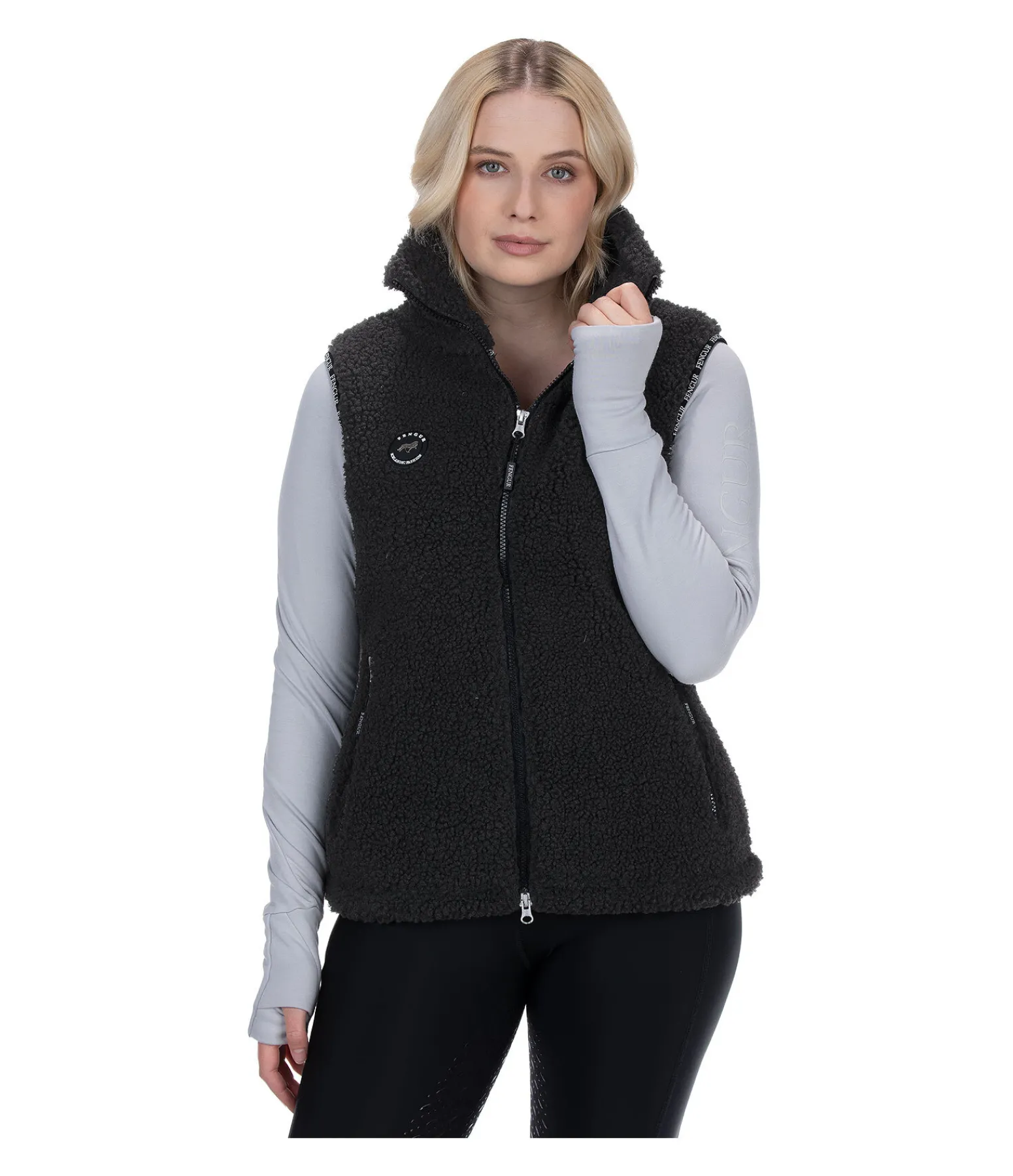 Gilet en polaire sherpa douillet avec col montant et badge logo sur la poitrine. Avec fermeture à glissière double sens devant et deux poches latérales zippées. Idéal pour la mi-saison grâce à sa doublure interne lisse ! 100 % polyester.