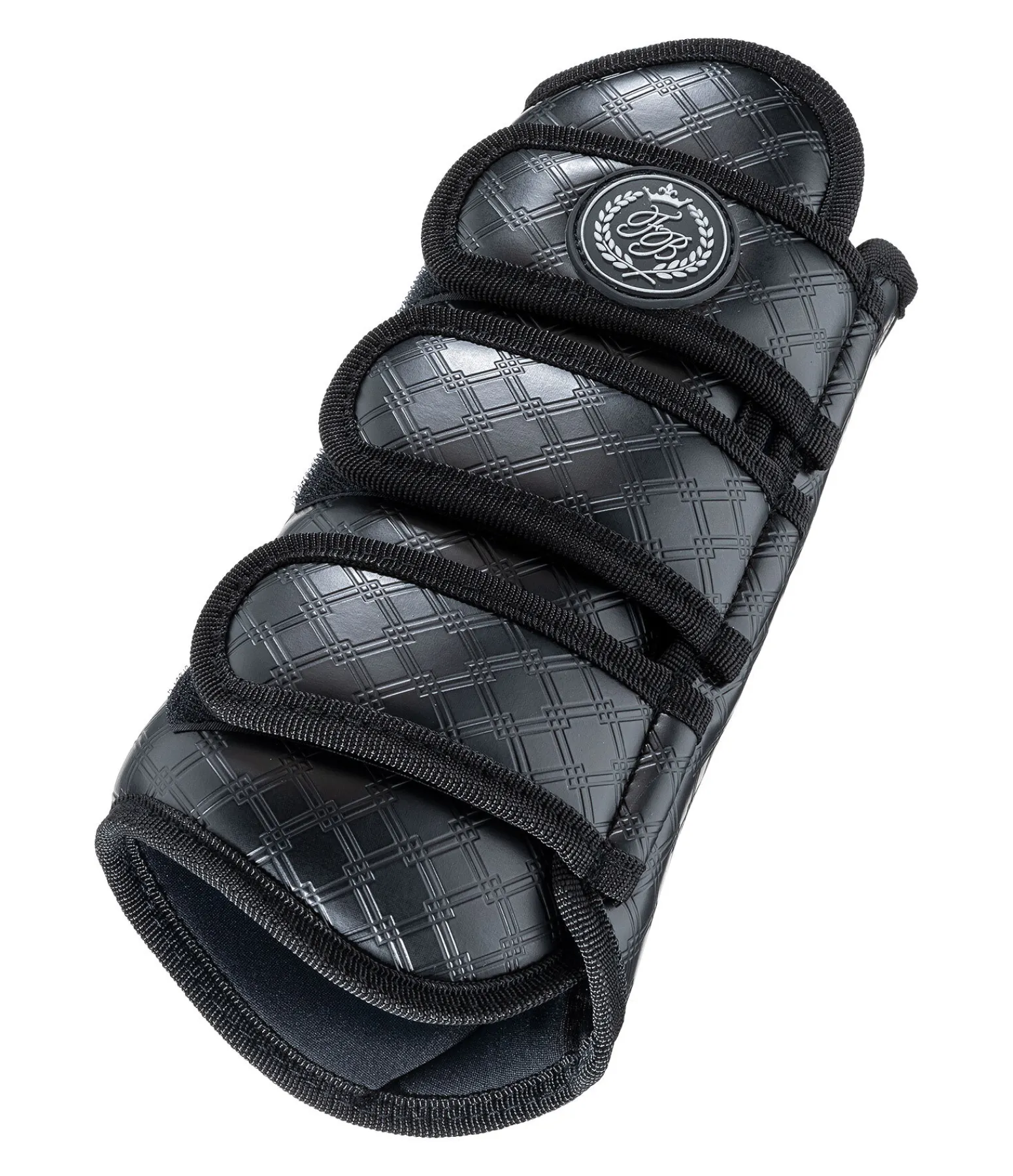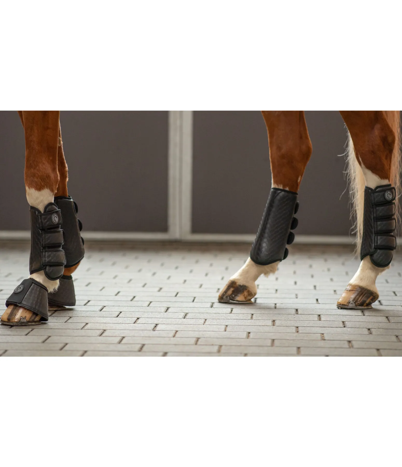 Guêtres anatomiques au look sportif en matière synthétique élégamment gaufrée. Avec protection intégrale protégeant des impacts sur les tendons et 3 pattes auto-agrippantes robustes pour un maintien sûr. Doublure moelleuse en caoutchouc-chloroprène pour une protection optimale contre les chocs. Pour antérieurs.