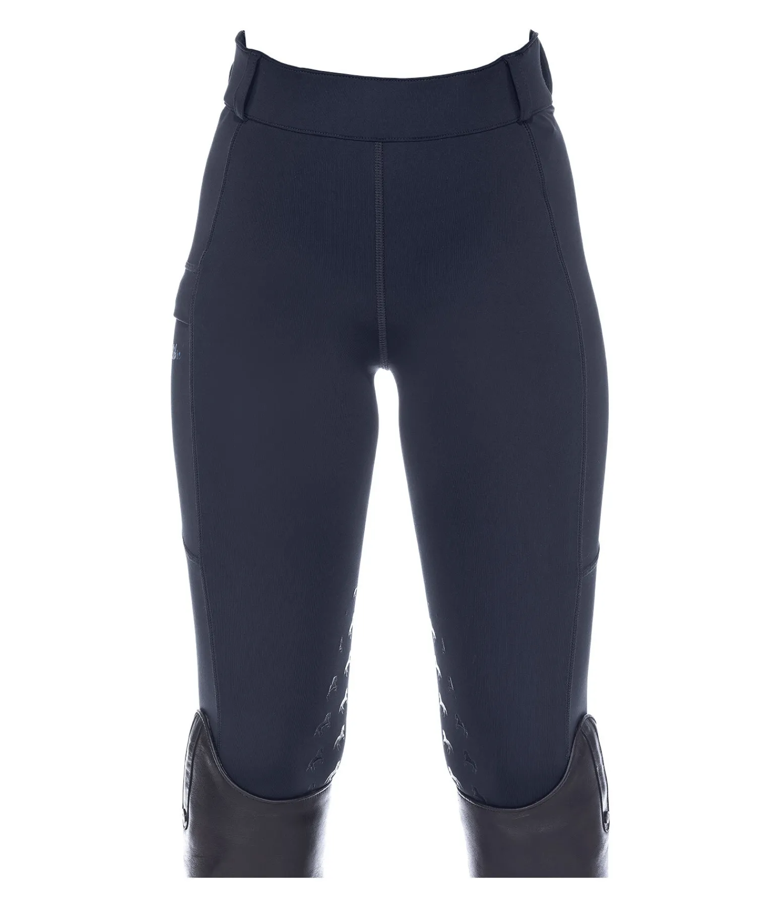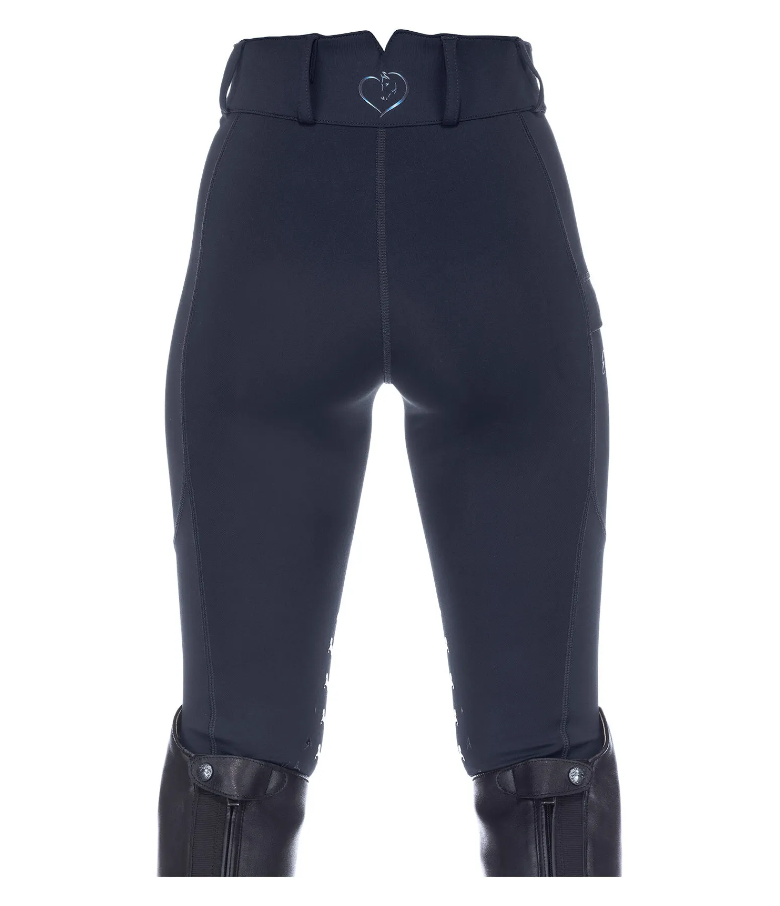 Legging d’équitation à basanes en silicone en forme de cheval. Look sportswear. Matière stretch respirante à séchage rapide, extensible dans 4 directions. Poche latérale pour téléphone portable avec logo imprimé. Badge cheval coeur imprimé à l’arrière de la ceinture. 85 % polyester, 15 % élasthanne.