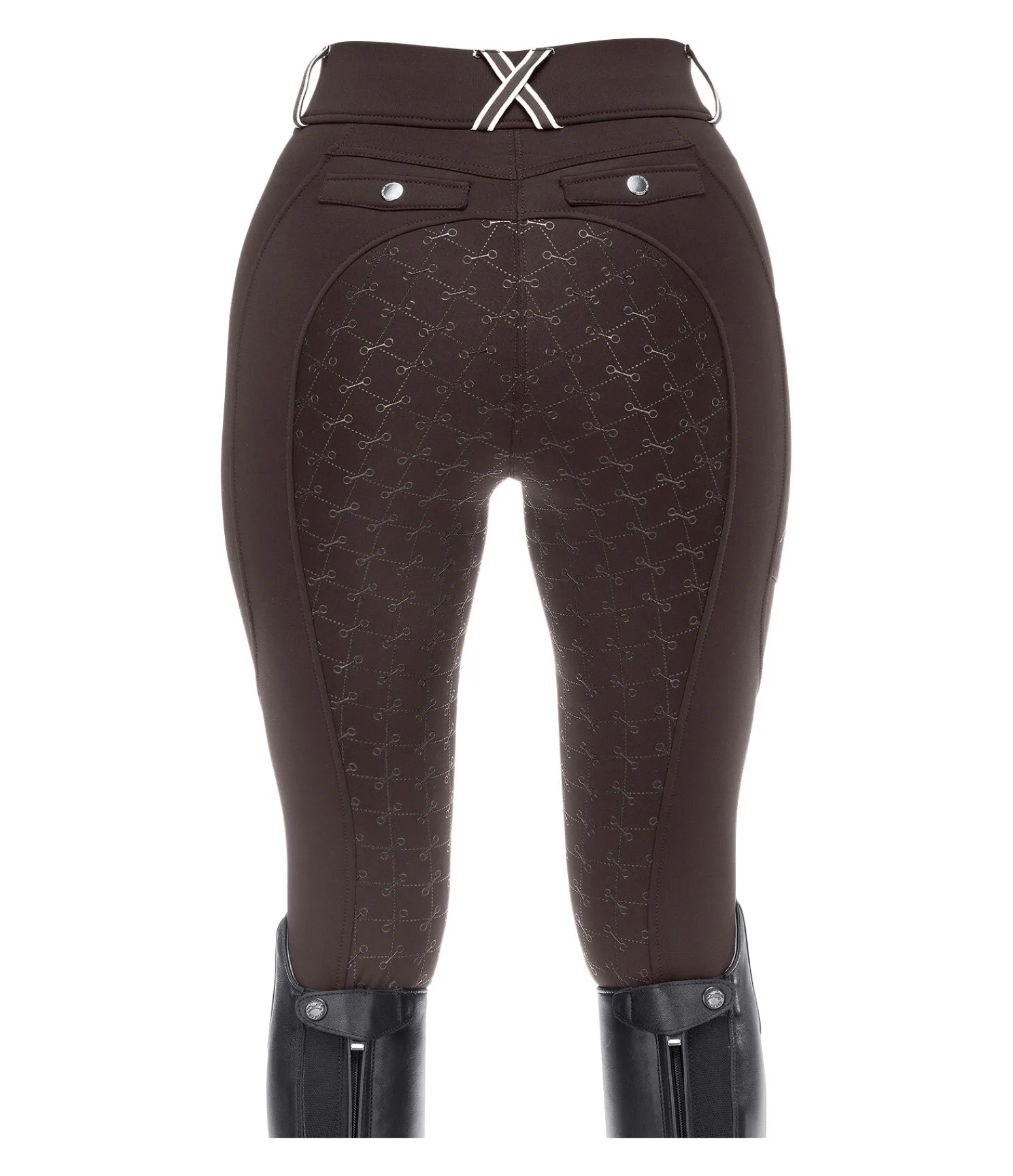 Legging d’équitation sportswear thermique avec fond intégral grip en silicone. Matière stretch respirante, extensible dans 4 directions. Séchage rapide. Intérieur molletonné. Imprimés Felix Bühler. Ceinture large avec passants. Une poche latérale zippée pour téléphone portable et deux fausses poches arrière. Aucune couture au niveau des genoux. Bas de jambe extensible. 60 % polyester, 33 % polyamide, 7% élasthanne.