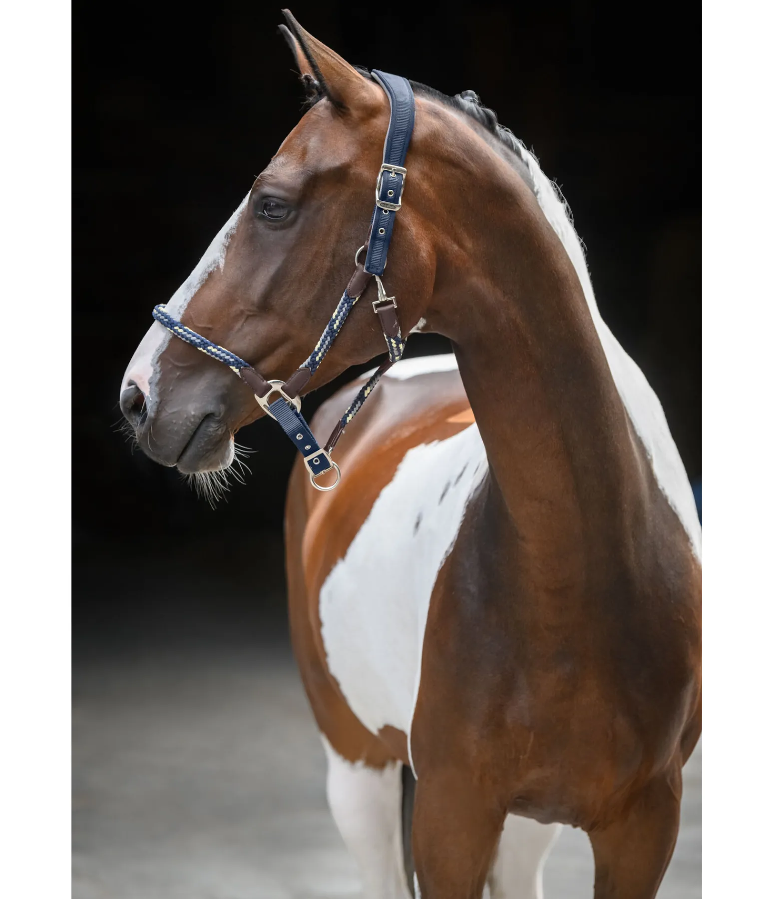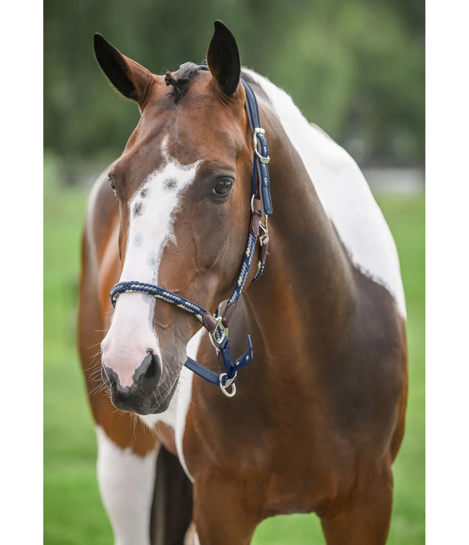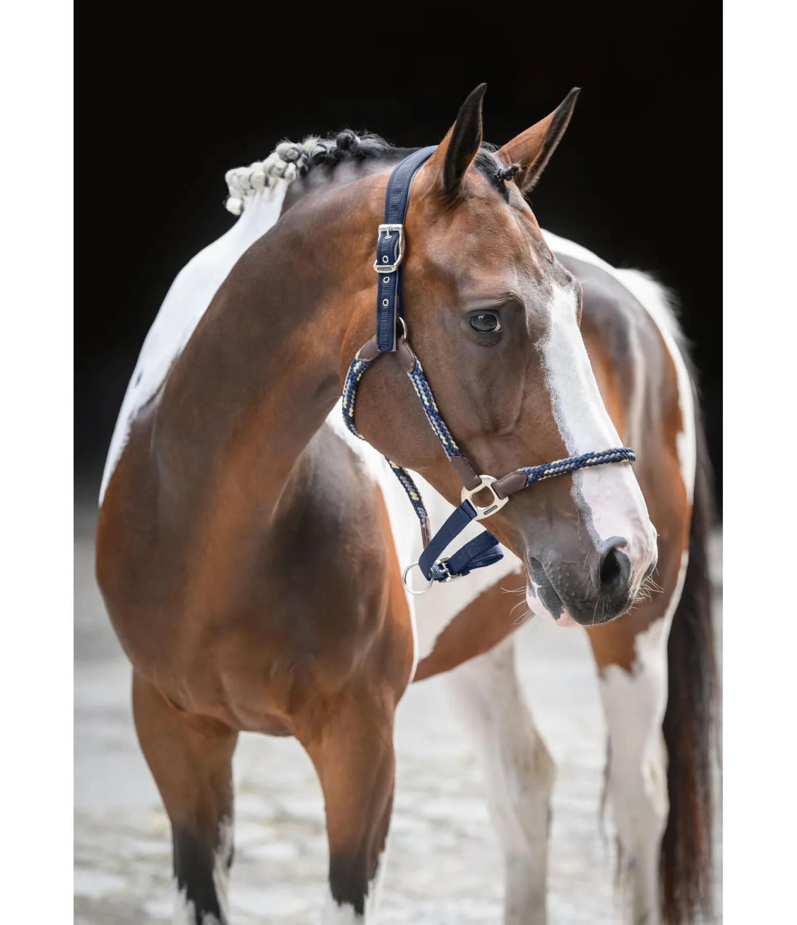 Élégant licol avec large têtière anatomique. Doublure douce en caoutchouc chloroprène. Muserolle, sous-gorge et montants en corde souple tressée pour une action directe mais douce. Têtière doublement réglable, muserolle réglable. Bouclerie résistante de qualité supérieure. 100 % polypropylène.