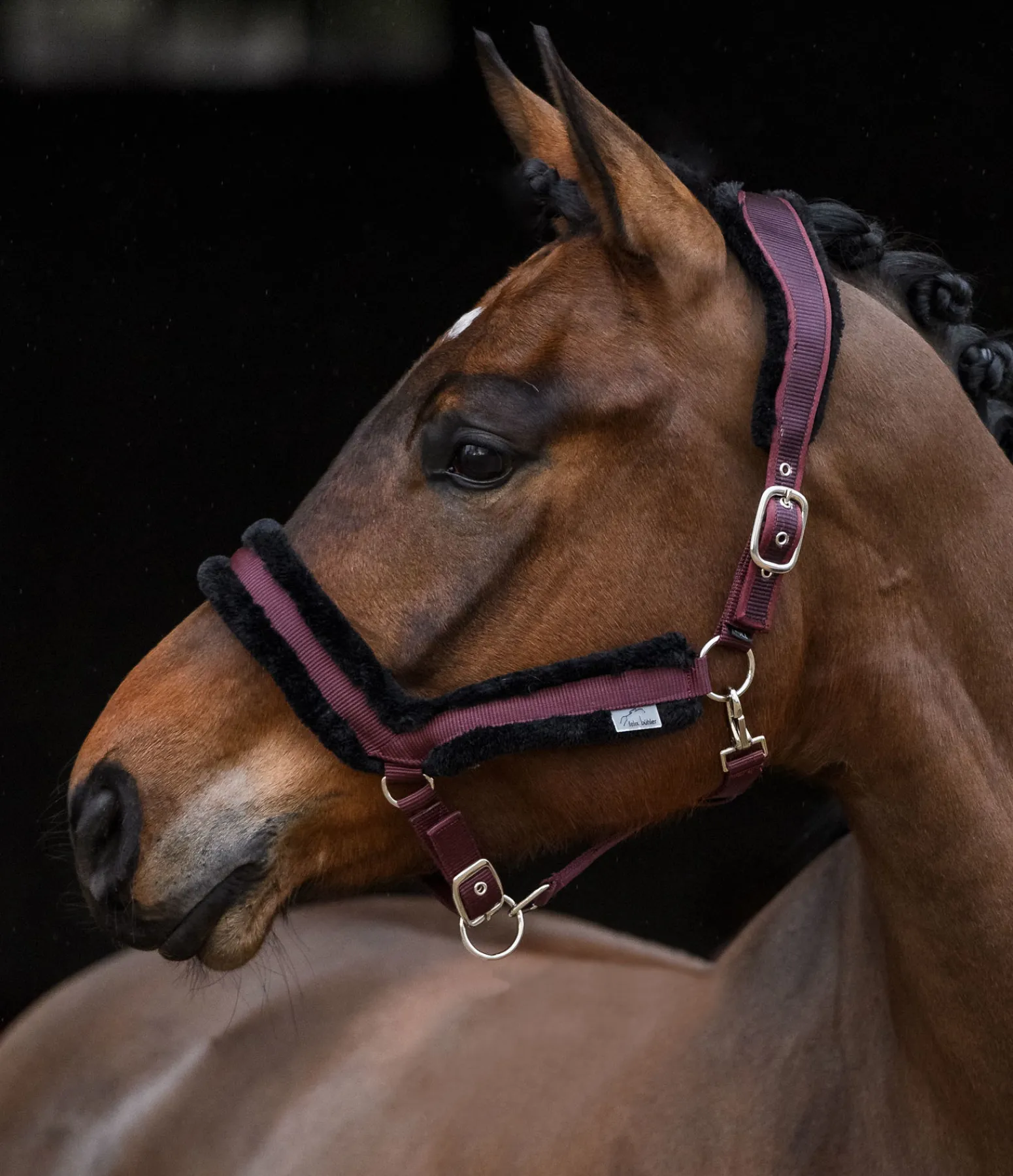 Licol particulièrement confortable avec large têtière anatomique et découpe aux oreilles. La coupe innovante en une seule partie recourbée constituant les montants et la muserolle permet d’éviter les pressions sur les nerfs faciaux et de ne pas avoir de grosses pièces métalliques sur les côtés de la muserolle. Têtière, montants et muserolle avec doublure en polaire Teddy douce. Têtière doublement réglable et muserolle réglable. Bouclerie argentée. Licol 100 % polypropylène, polaire Teddy 100 % polyester.