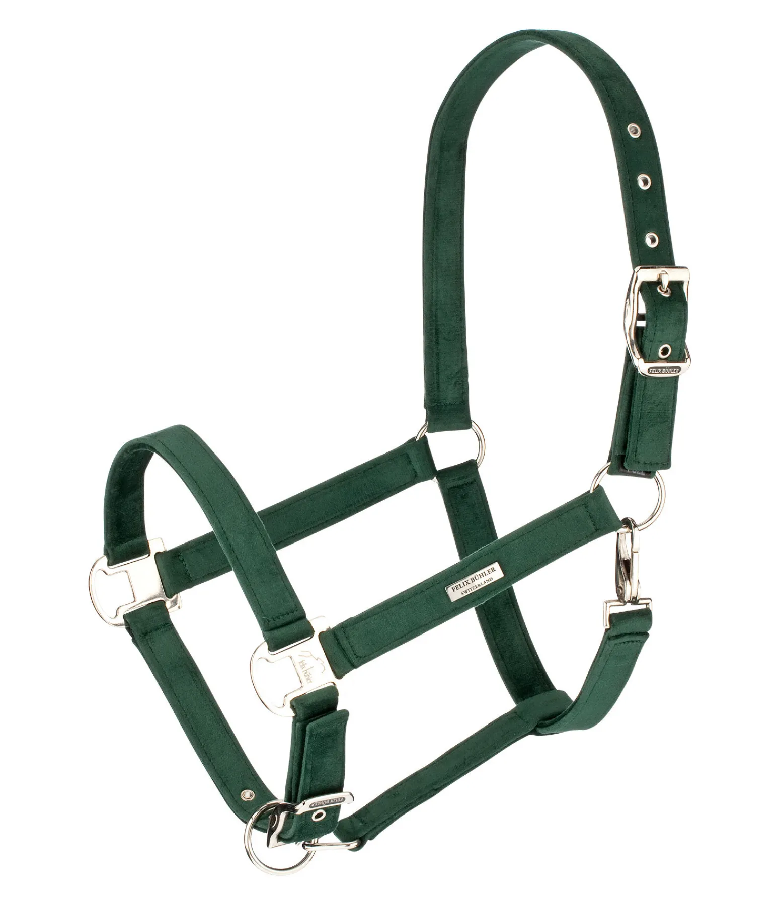 Élégant licol entièrement doublé en matière satinée. Avec plaque logo métallique brillante. Têtière et muserolle réglables. 100 % polypropylène.