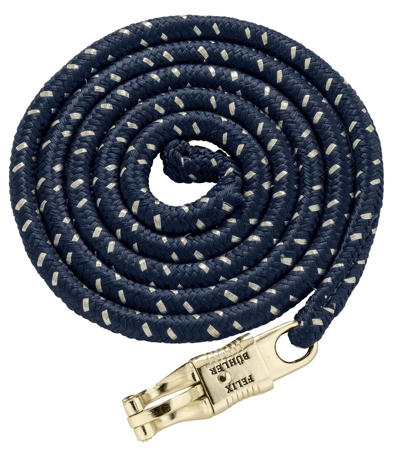 Longe d’attache ronde avec tressage serré, fil scintillant et mousqueton anti-panique de couleur assortie. Parfaitement assortie au licol 310047. 2 m. 100 % polyester.