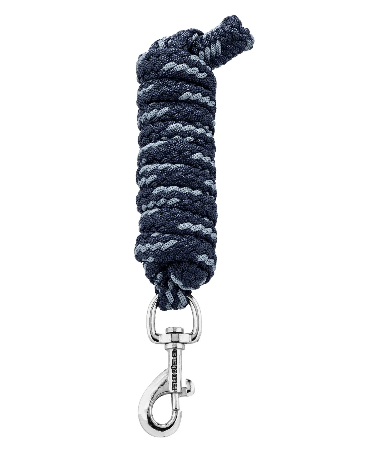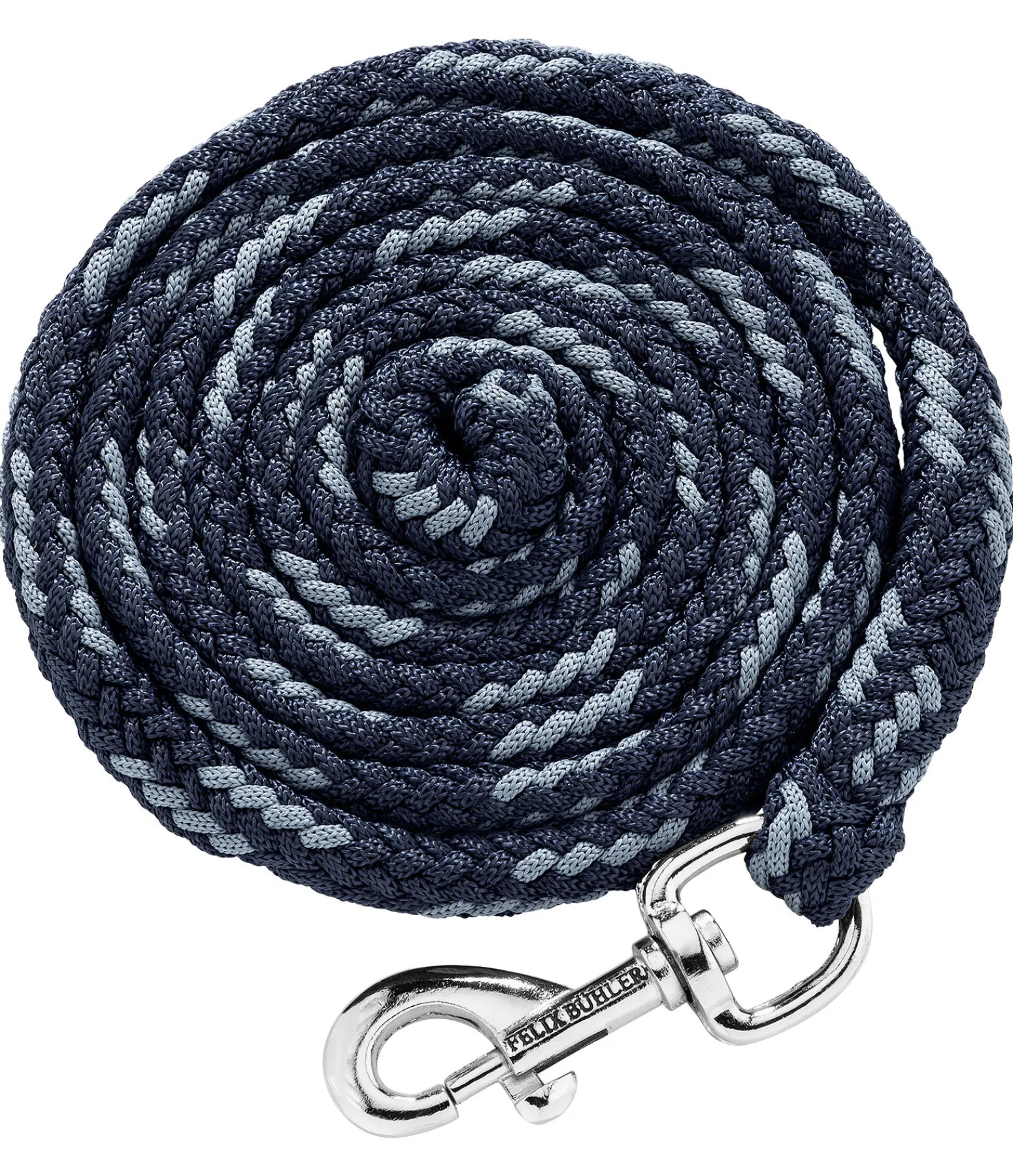 Longe ronde solide et bicolore avec mousqueton. Bouclerie argentée. 2 m. 100 % polyester. Parfaitement assortie au licol 310053.
