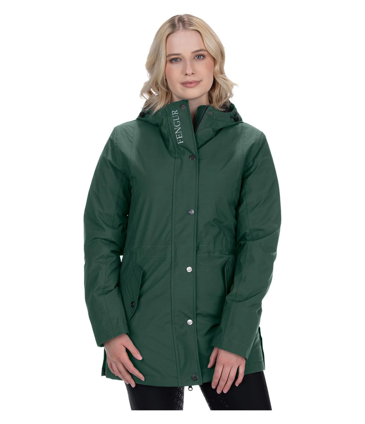 Manteau d’équitation technique imperméable et coupe-vent (10.000 mm) avec garnissage chaud en imitation duvet. Capuche pouvant être fixée dans le dos. Détails réfléchissants sur le col et la capuche. Taille élastiquée réglable. Capuche ajustable. Deux fentes cavalières à l’arrière avec fermeture à glissière. Fermeture à glissière double sens dissimulée à l’avant et poches latérales à rabat. 100 % polyester.