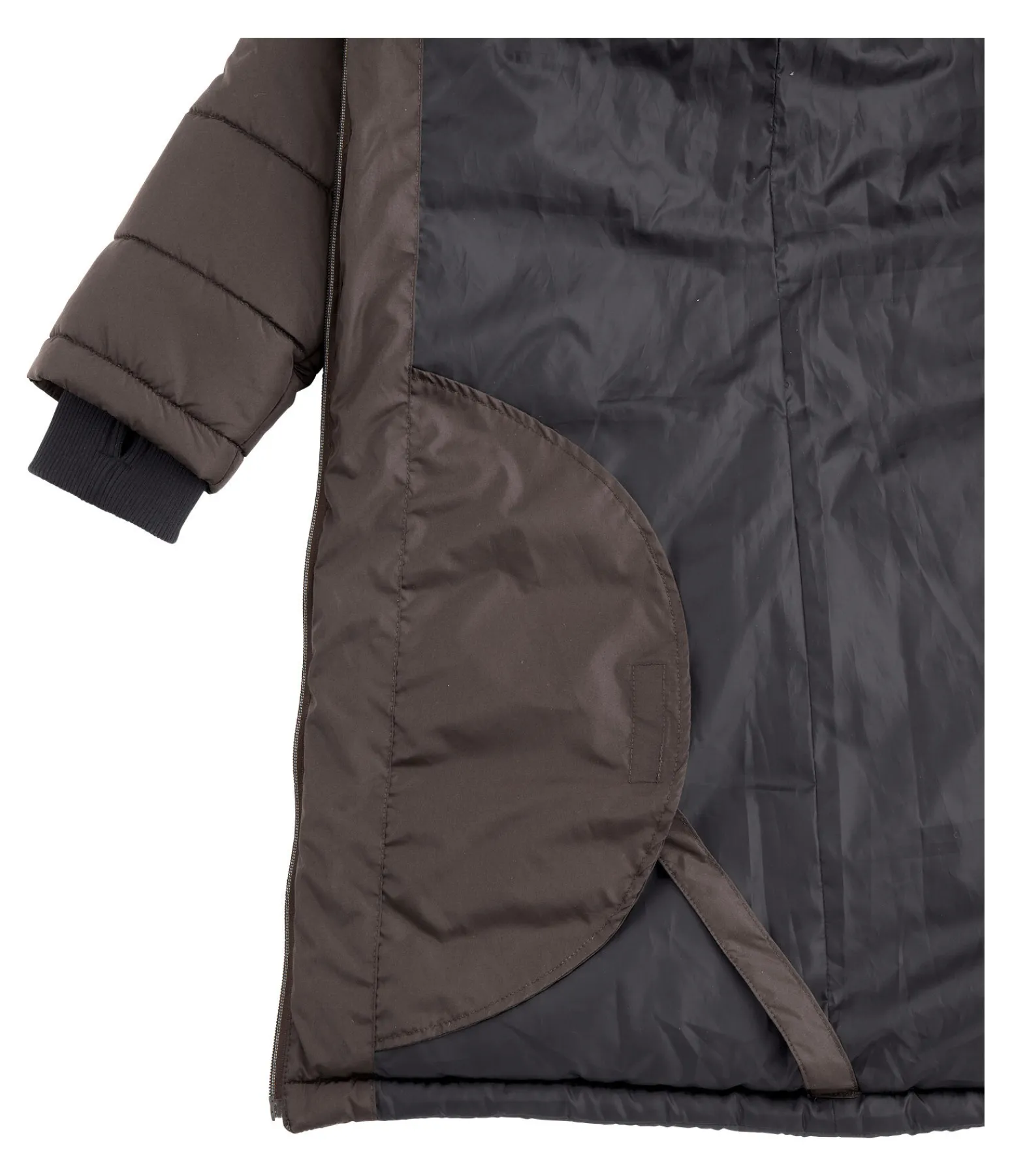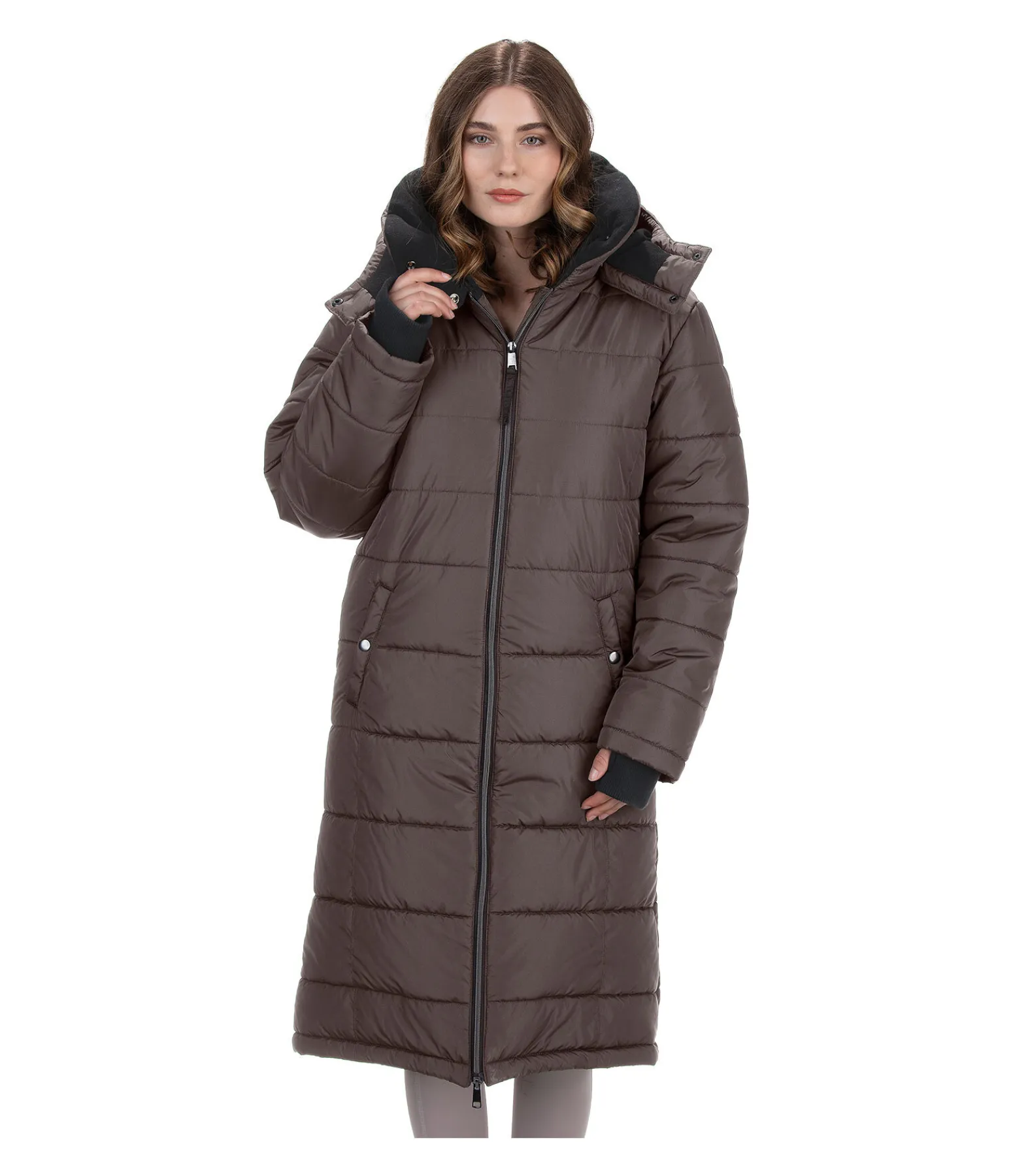 Manteau d’équitation extra long et chaud. Col haut doublé en polaire douce. Capuche doublée amovible. Bas des manches avec passe-pouce. Longue fente cavalière avec fermeture à glissière et soufflet protégeant de la pluie à l’arrière. Fermeture à glissière double sens. Courroies de cuisses. Deux grandes poches latérales avec bouton-pression et une poche intérieure zippée. Ajustable au niveau de la taille avec cordon de serrage. Rembourrage chaud. 100 % polyester.