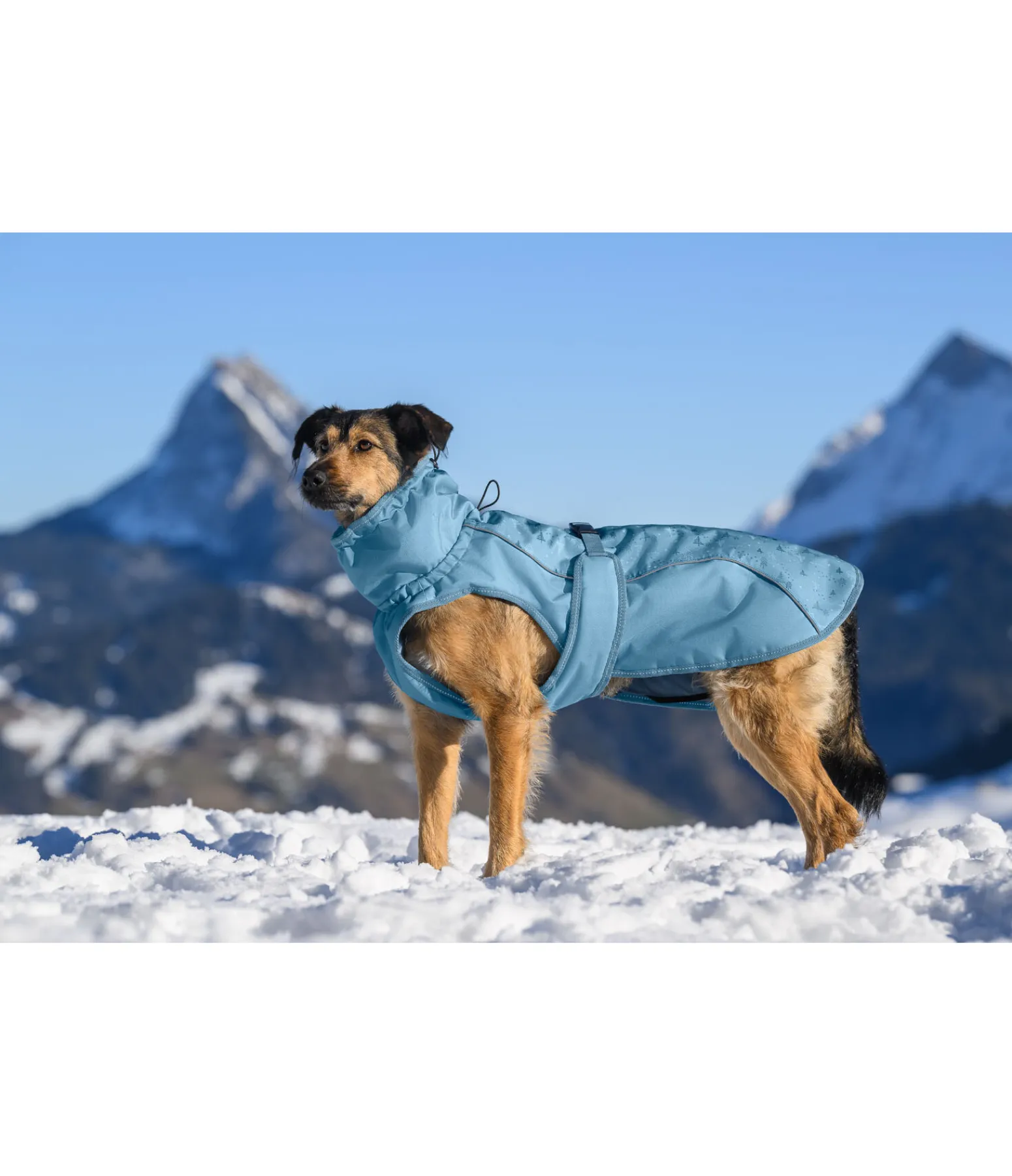 Manteau d’hiver imperméable (3 000 mm) et respirant avec un motif hivernal imprimé. Éléments réfléchissants sur le bord, passepoil réfléchissant et logo réfléchissant sur le col. Garnissage chaud de 140 g avec intérieur lisse au niveau du tronc et du poitrail pour un confort optimal. Idéal pour les journées froides et humides d’automne ou d’hiver. Dessus en polyester Oxford 600 deniers robuste et résistant à la déchirure. Ajustable à la morphologie du chien grâce aux réglages prévus au niveau du cou et au rabat ventral qui se règle en continu et se ferme par clip. Passage de harnais étanche et passage de collier au niveau du col. Des courroies de cuisses élastiques permettent d’éviter que le manteau ne glisse lorsque le chien s’amuse. Découpes au niveau des pattes avant pour une liberté de mouvement maximale. 100 % polyester.