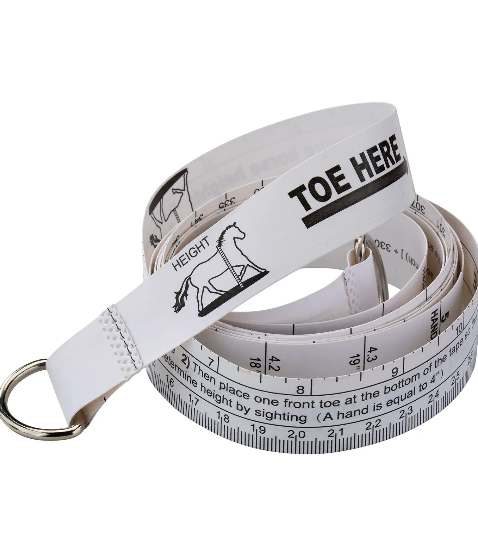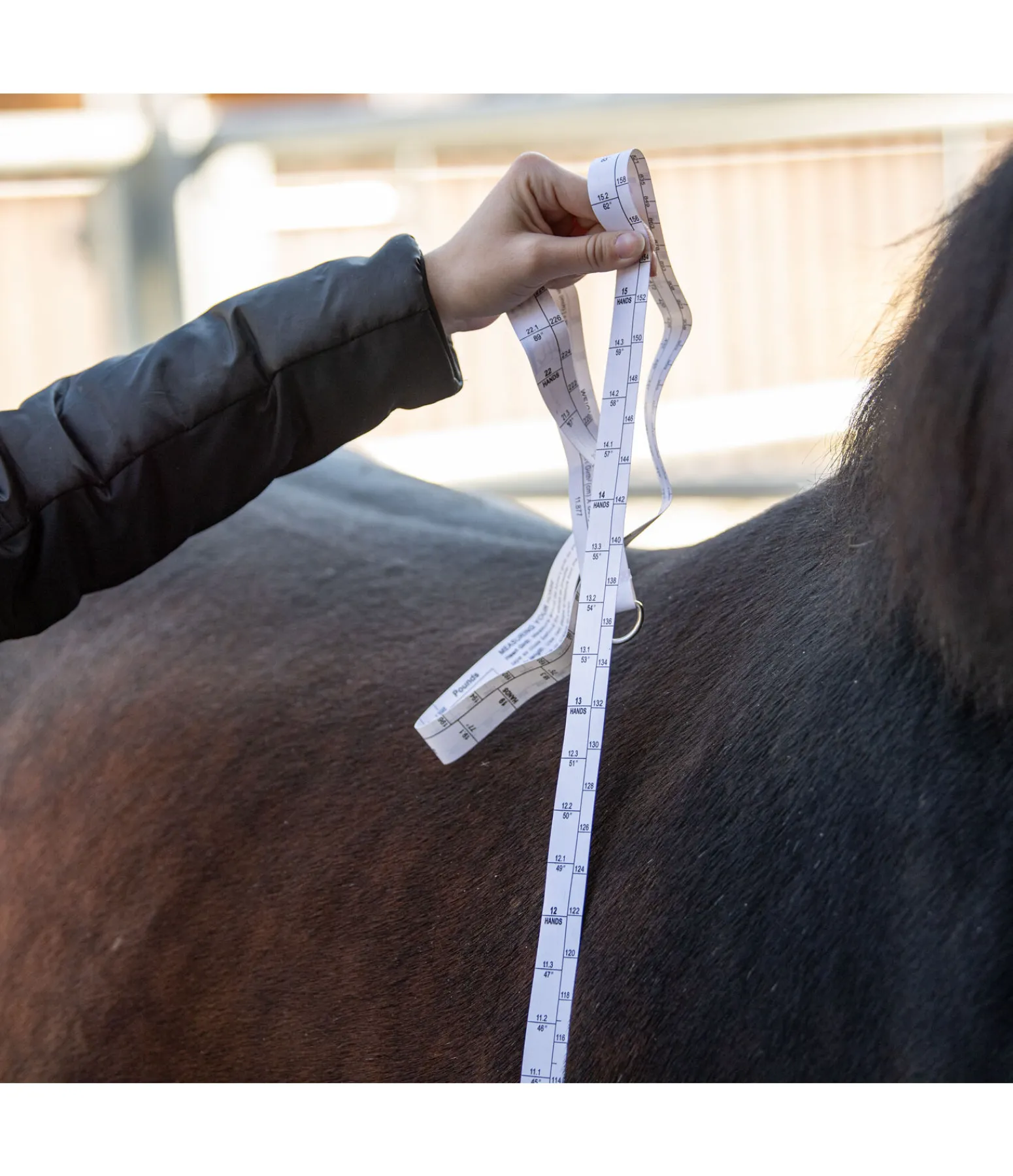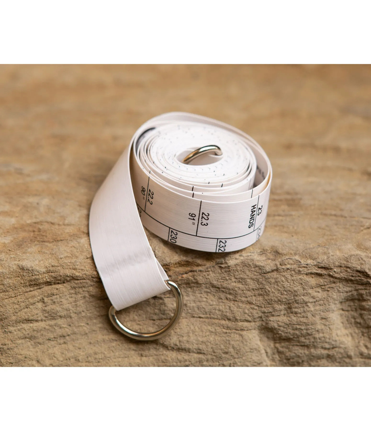 Mètre ruban permettant de mesurer la taille et le tour de ventre de ton cheval ou ton poney et de déterminer son poids approximatif.