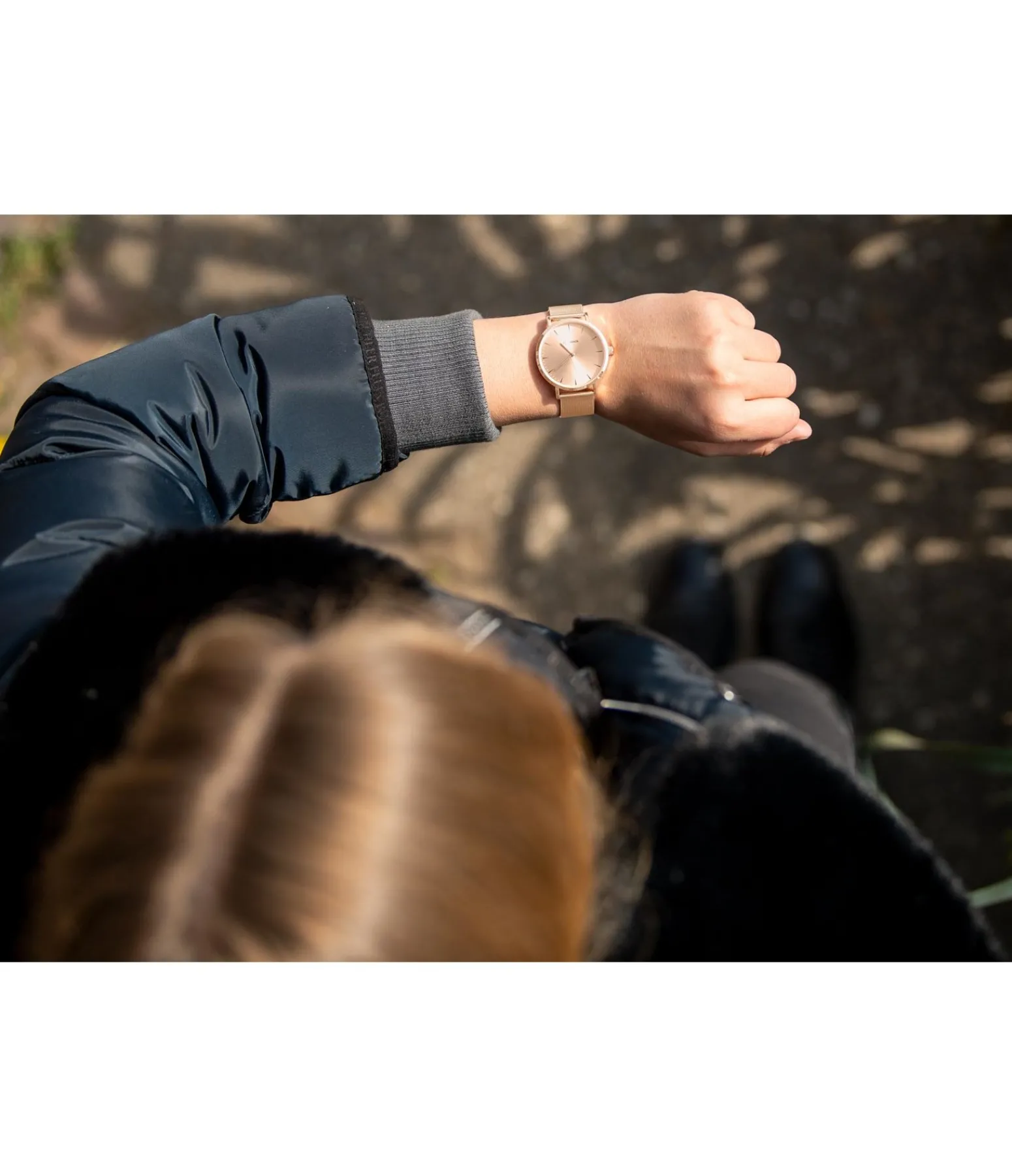 Montre tendance avec cadran Felix Bühler. Bracelet ajustable en maille. Matériau en acier inoxydable brillant décliné en 2 couleurs différentes. Mouvement Miyota 2035. Étanchéité 3 ATM signifiant que la montre résiste aux éclaboussures. Livrée dans une jolie boîte à bijoux Felix Bühler. Diamètre 35 mm. Bracelet 23,5 x 1,8 cm.