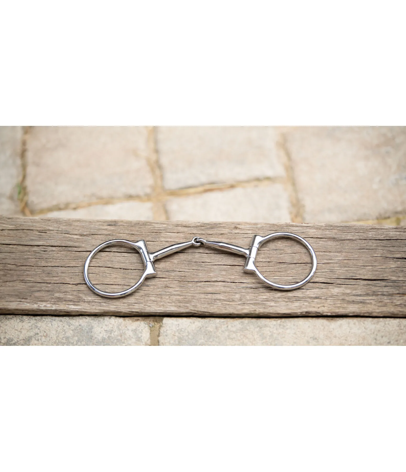 Mors de qualité en acier inox. Simple brisure avec incrustations en cuivre. Épaisseur : 11 mm. Diamètre de l’anneau : 7 cm.
