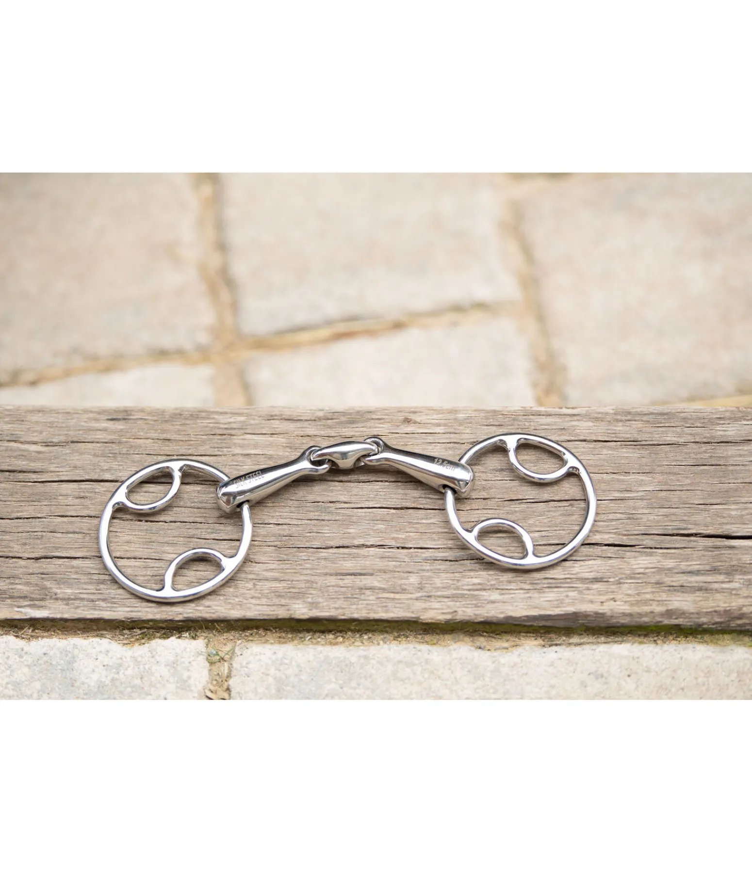 Mors universel à double brisure, de forme anatomique, avec 3 variantes de points d’attache différentes. Permet une utilisation individualisée, selon l’usage prévu et l’expérience. Acier inoxydable. 16 mm. Diamètre de l’anneau : 75 mm.