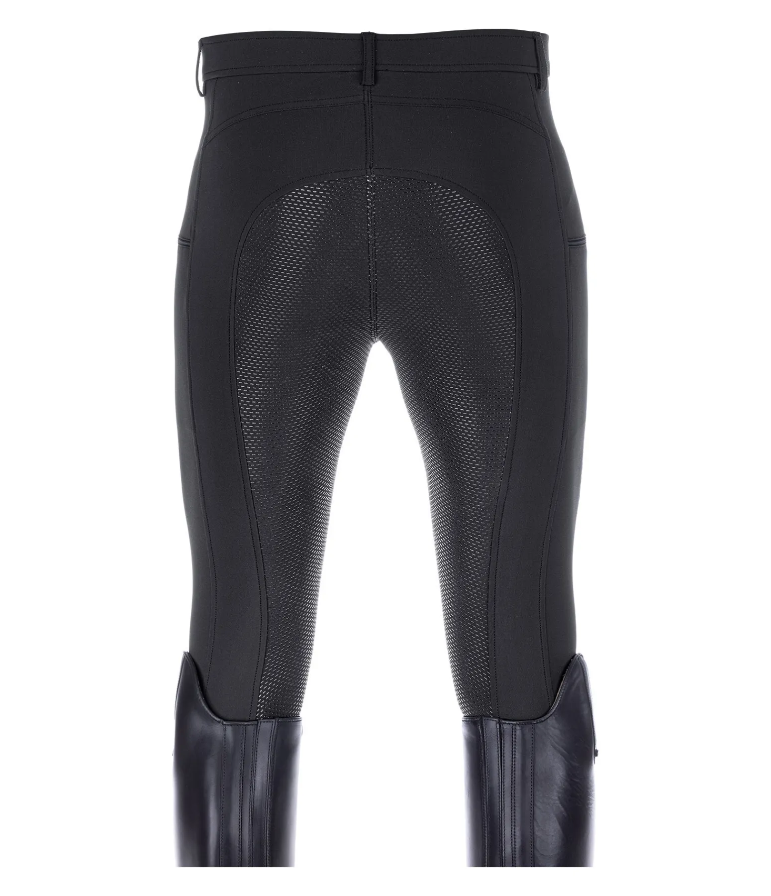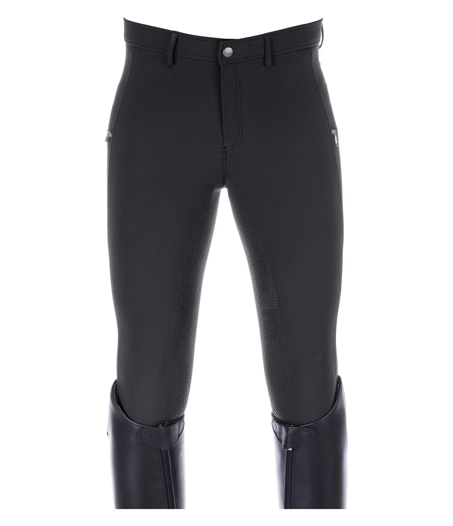 Pantalon d’équitation technique avec fond intégral grip en silicone. Matière déperlante et respirante. Ceinture élastiquée avec passants. Poche zippée latérale sur les deux jambes pour garder le téléphone portable en toute sécurité à cheval. Logo discret brodé à l’avant. Bas de jambe extensible sans patte auto-aggripante. Déperlant et respirant. 93% polyamide, 7% élasthanne.