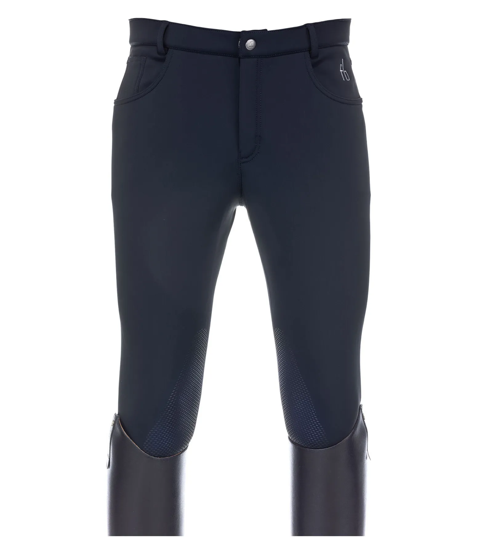 Pantalon d’équitation d’hiver sportswear avec basanes en silicone. Matière déperlante et respirante. Deux poches avant et une poche zippée arrière. Bas de jambe extensible sans patte auto-agrippante. Logo discret brodé sur la poche avant. Bande en silicone avec inscription Felix Bühler à l’intérieur de la ceinture pour un maintien optimal. Extérieur 88 % nylon, 12 % élasthanne, intérieur 100 % polyester.