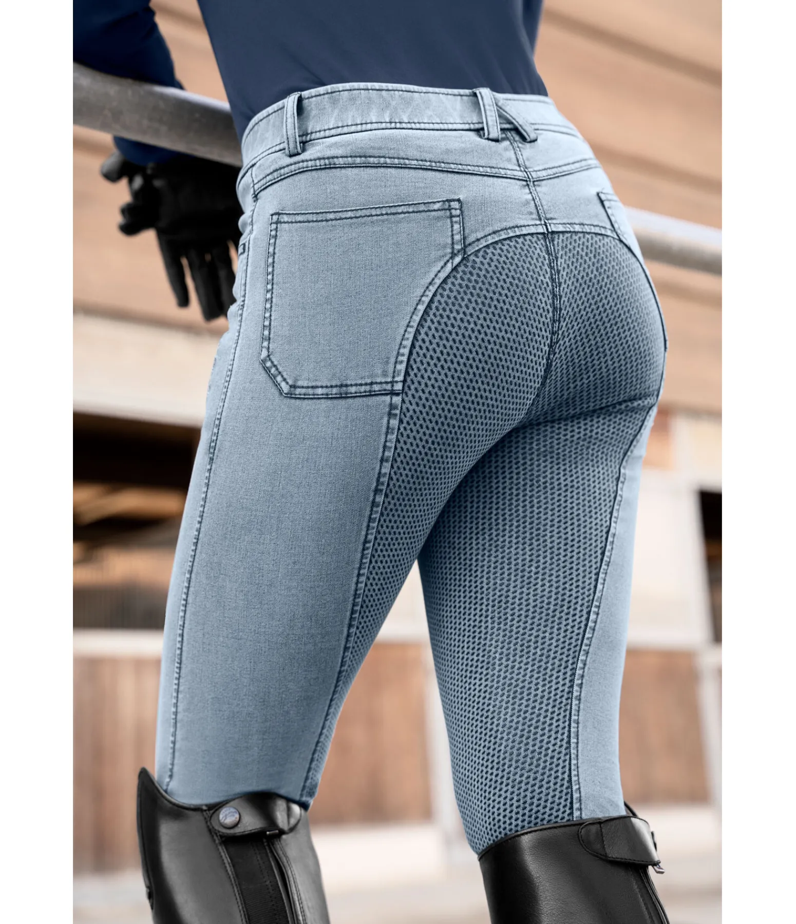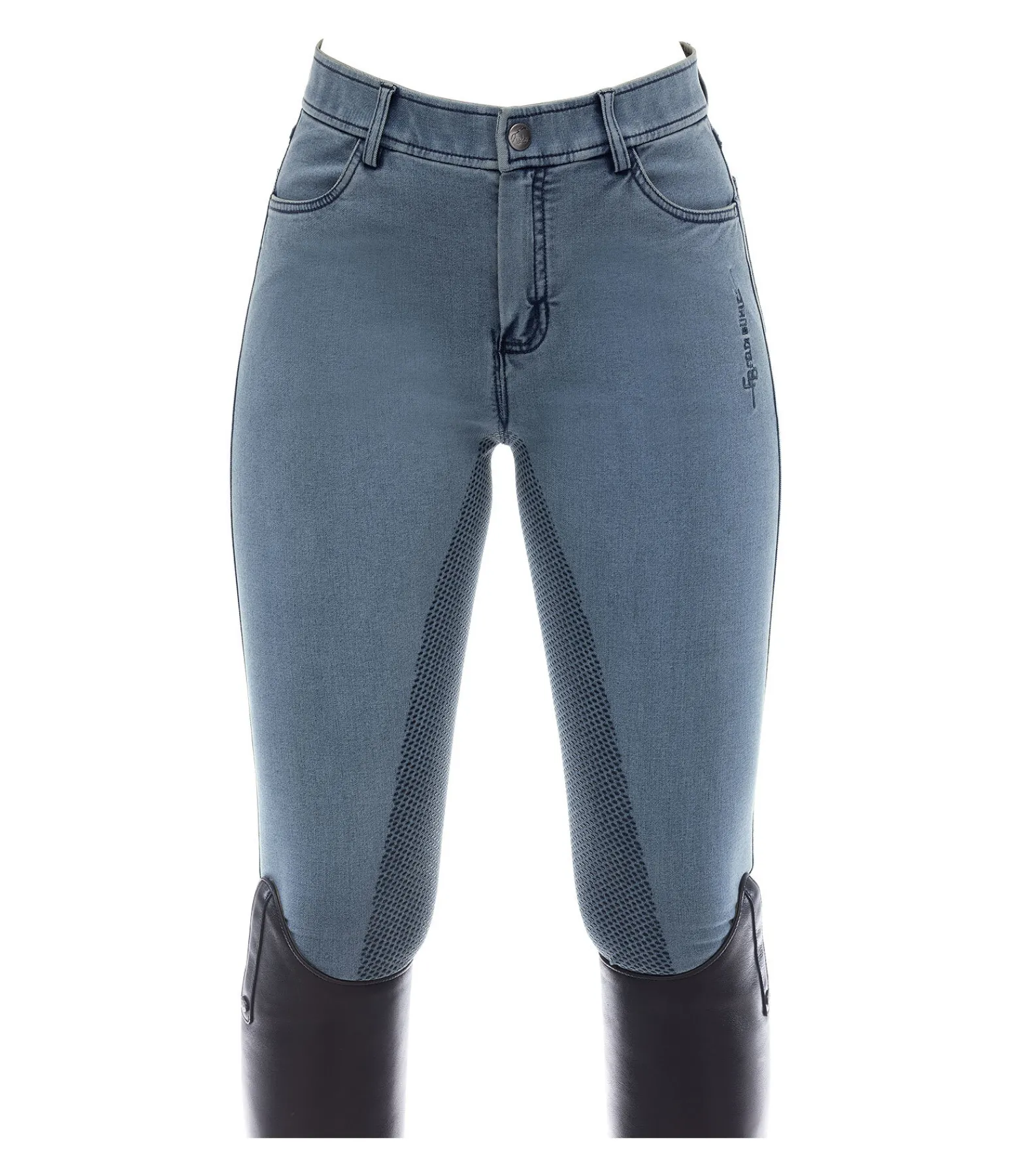 Pantalon d’équitation en jean bien coupé et confortable pour enfant. Fond intégral en silicone. Ceinture avec passants, 2 poches avant et arrière, sans coutures aux genoux, bas de jambe extensible, broderie Felix Bühler. 60 % coton, 24 % polyester, 10 % viscose, 6 % élasthanne.