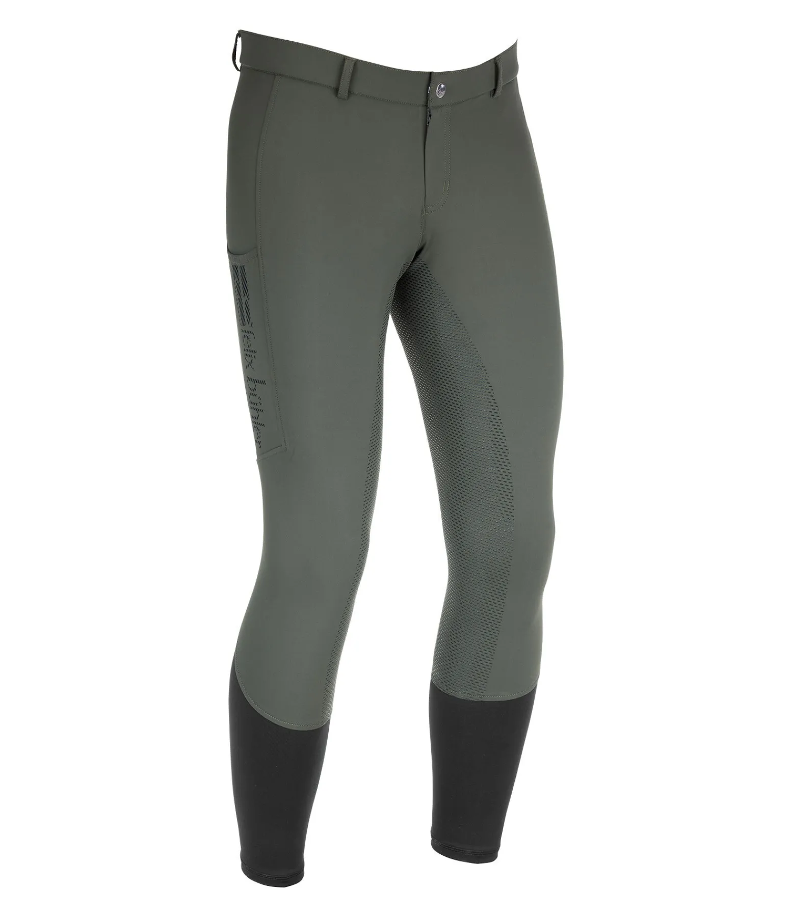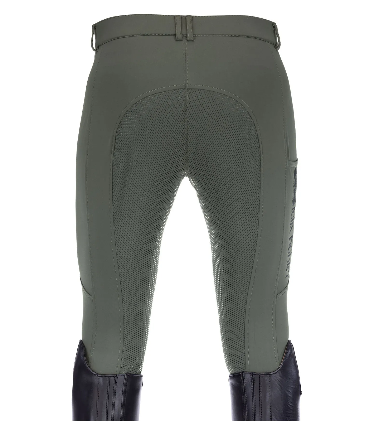 Pantalon d’équitation à fond intégral grip en silicone ultra confortable. Matière stretch respirante et extensible dans 4 directions. Séchage rapide. Bande en silicone avec inscription Felix Bühler à l’intérieur de la ceinture. Une poche pour téléphone portable sur la cuisse avec imprimé Felix Bühler. Bas de jambe extensible sans patte auto-agrippante. 75 % polyester, 25 % élasthanne.