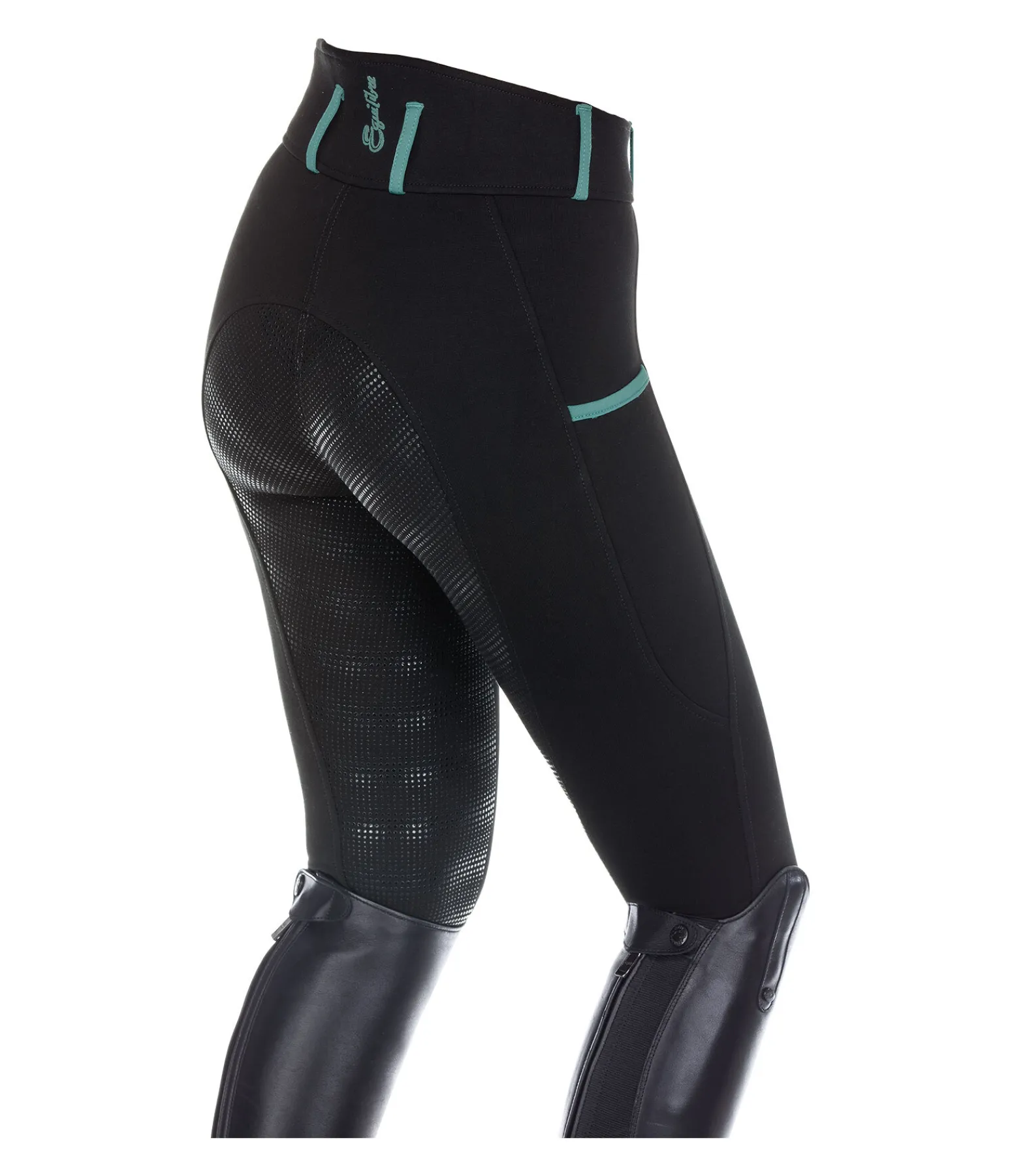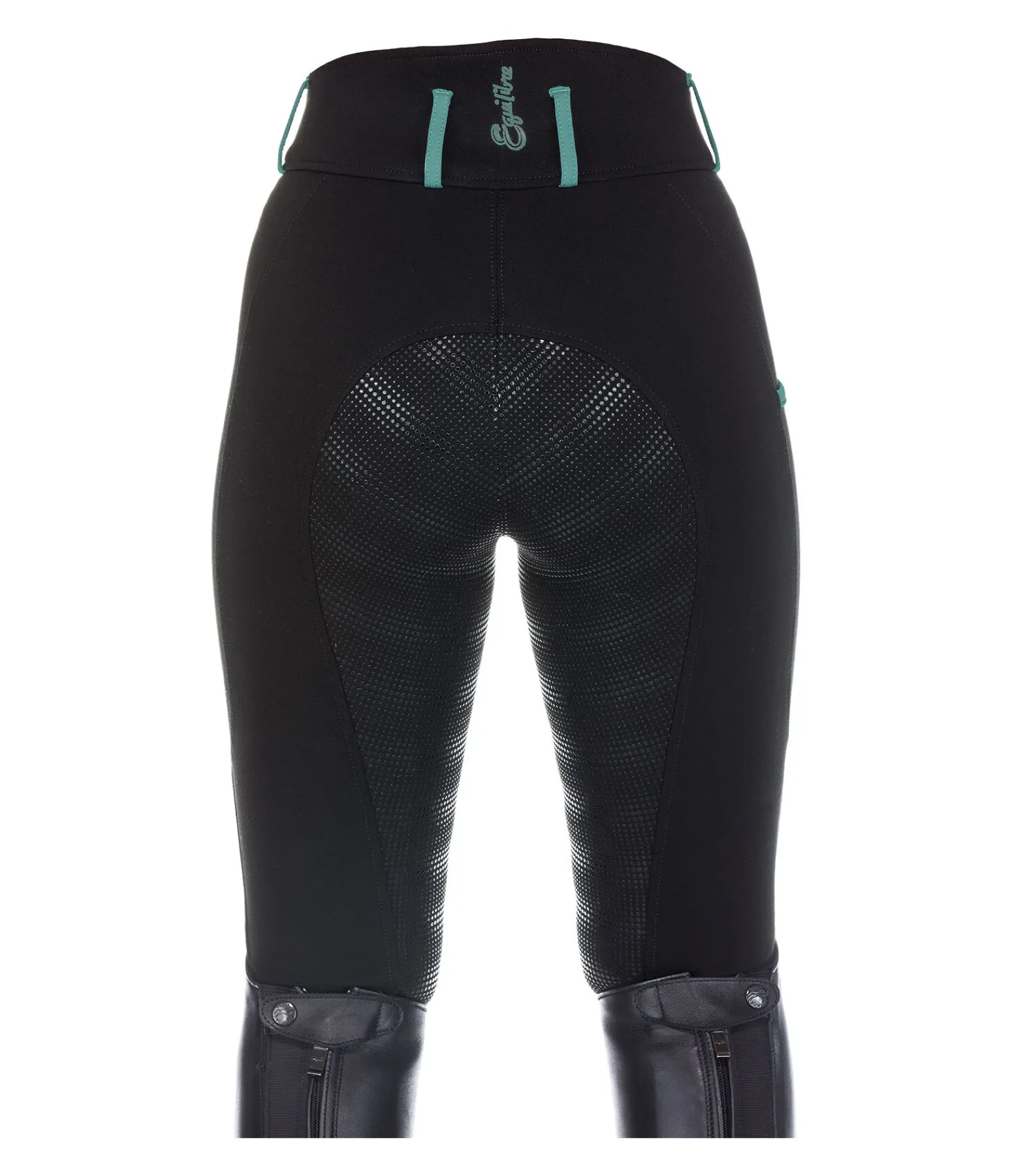 Magnifique pantalon d’équitation taille haute avec fond intégral en silicone. Matière respirante, extensible dans 4 directions. Bas de jambe extensible sans patte auto-agrippante. Poche latérale pour téléphone portable. Passants de ceinture au niveau de la taille. 68 % viscose, 27 % polyamide et 5 % élasthanne.