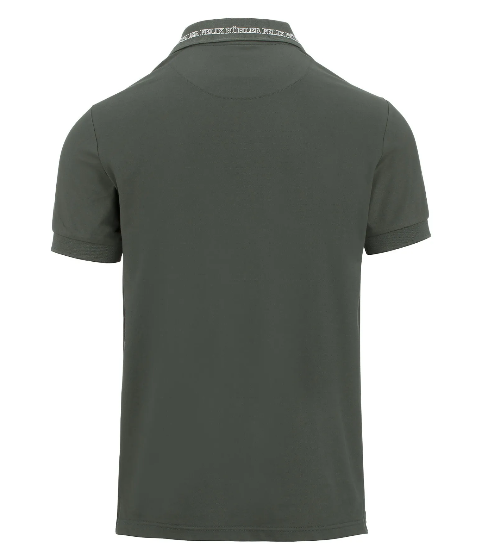 Polo à séchage rapide avec logo Felix Bühler sur la poitrine et inscription sur le col. 50 % polyester, 46 % coton, 4 % élasthanne.