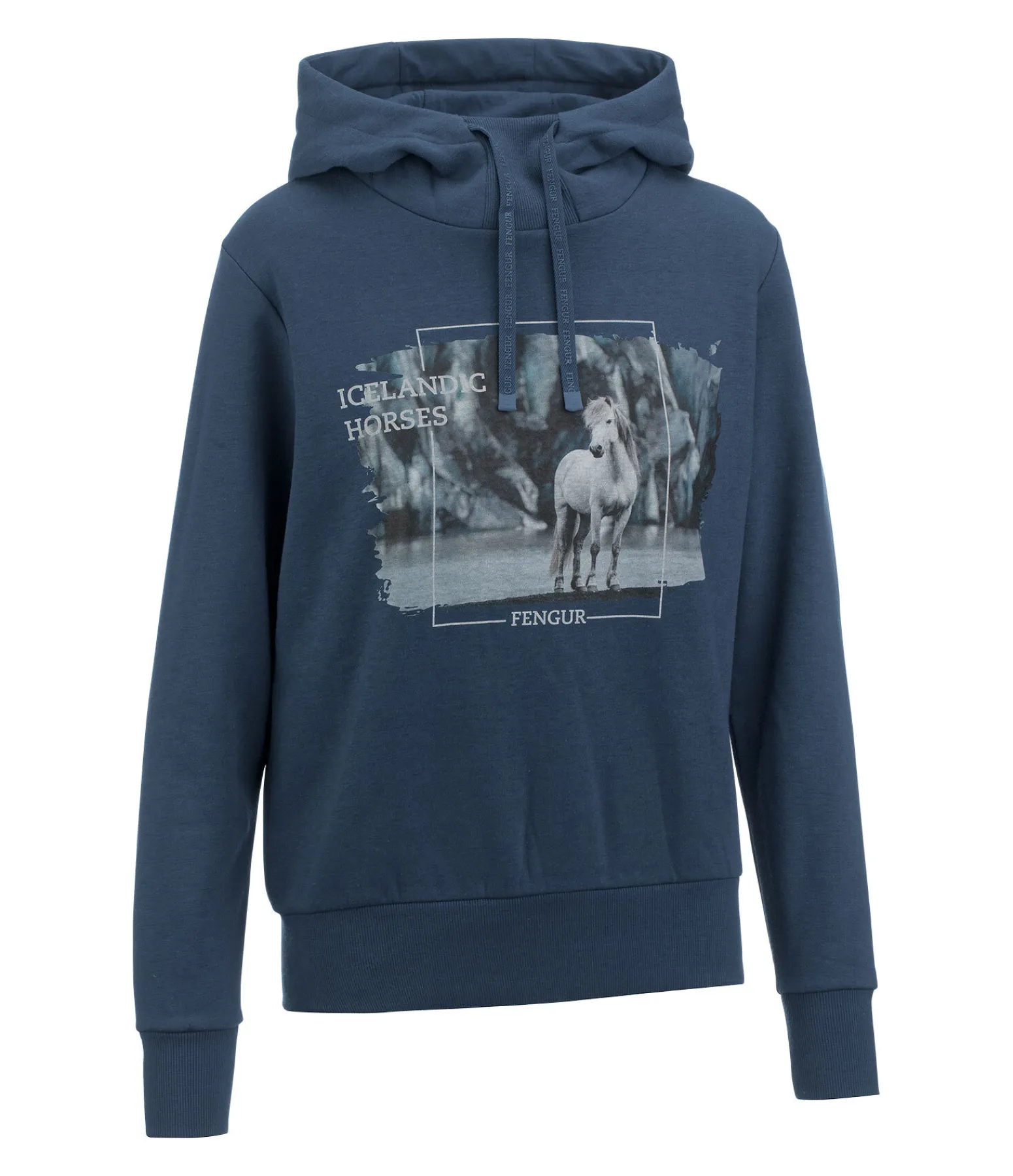 Pull à capuche extra-doux avec motif islandais sur la poitrine. Capuche réglable par cordons de serrage imprimés. Finition bord-côte au col, en bas des manches et à la taille. 65 % polyester, 35 % coton.