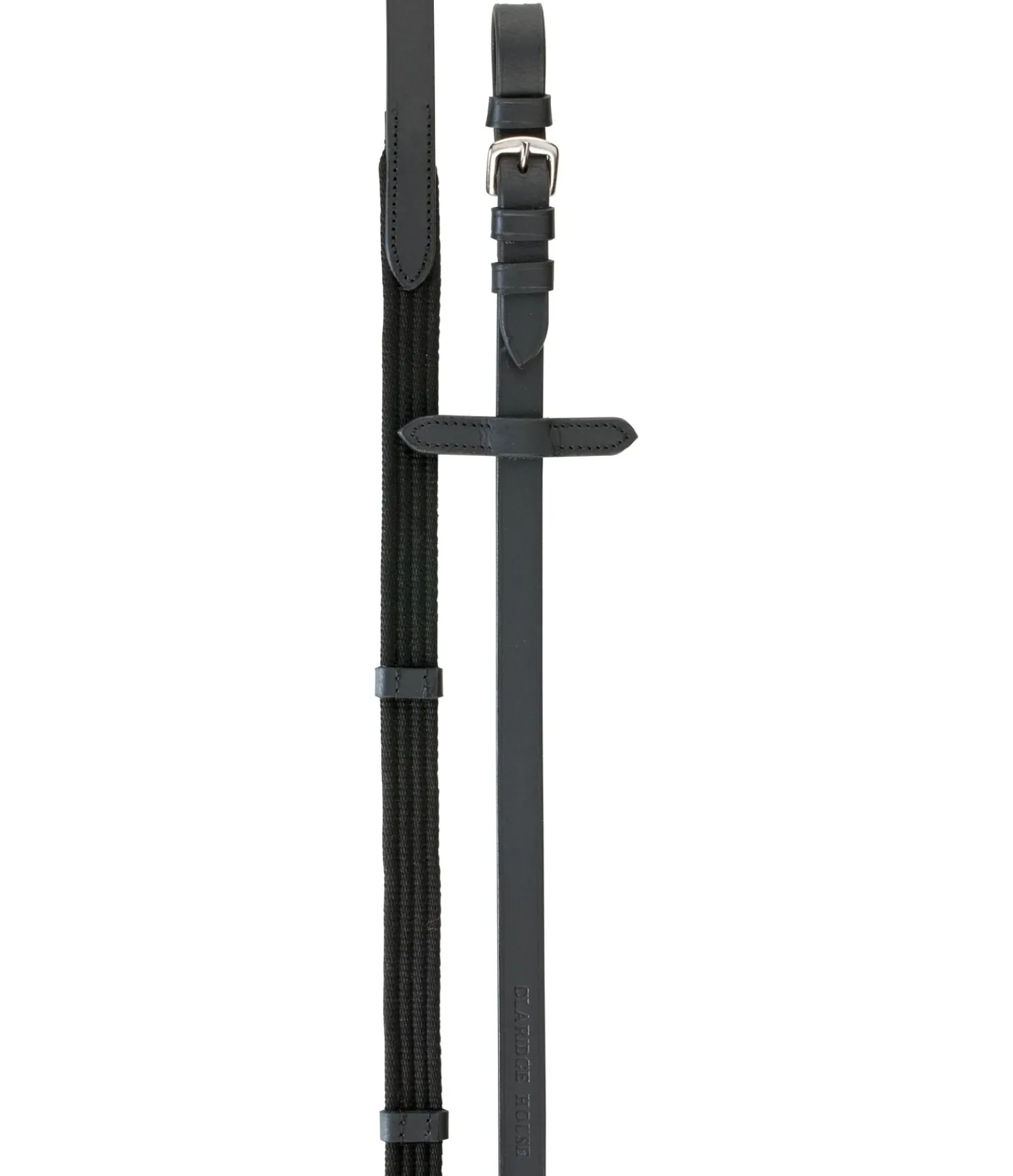 Rênes en cuir gras véritable souple de grande qualité, permettant une bonne prise en main. Arrêtoirs de martingale. Bouclerie argentée en S et DB, et rose doré en SR. Largeur 2 cm.