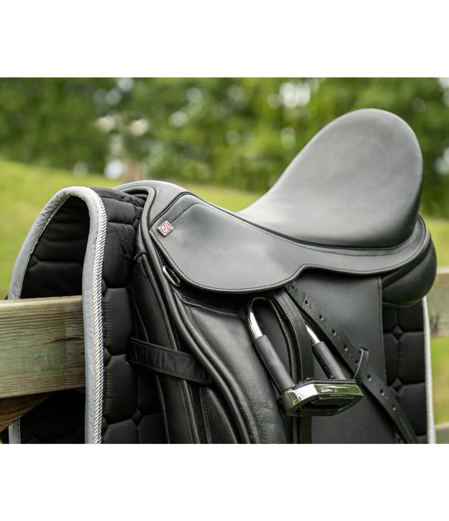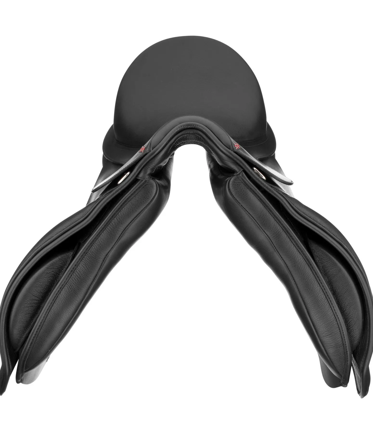 Élégante selle de dressage en cuir véritable avec siège creux anatomique et rapport qualité/prix imbattable. Arçon synthétique résistant et néanmoins flexible. Arcade interchangeable et sanglage en Y. Généreuses matelassures rembourrées en laine synthétique pour une répartition optimale des pressions. Taquets repositionnables pour un ajustement personnalisé. Livrée avec une arcade de garrot bleu clair (normal, 30 cm).