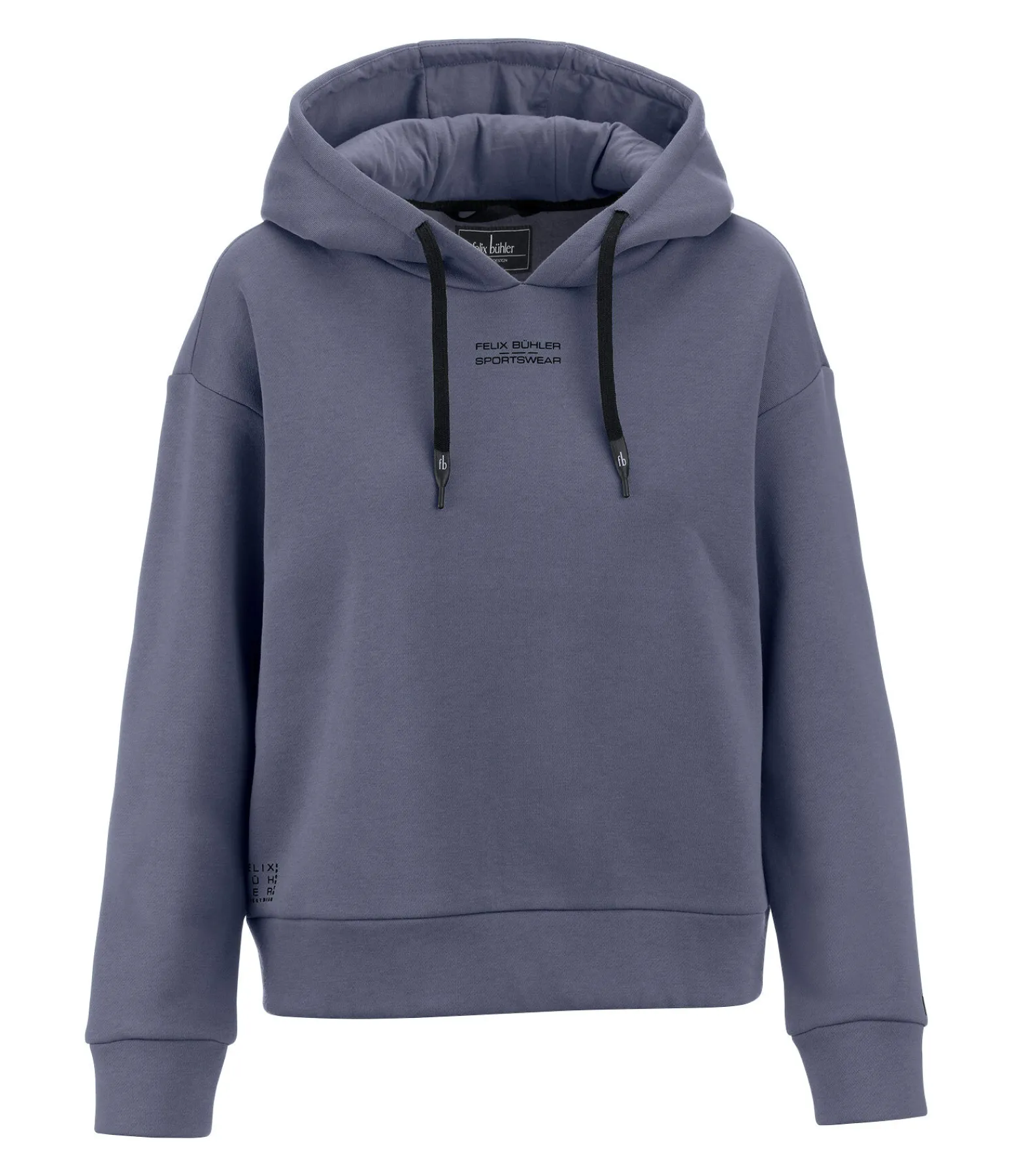 Sweat à capuche tendance en coton stretch de qualité supérieure avec capuche ajustable. Coupe décontractée avec emmanchures basses. Différents imprimés Felix Bühler devant et derrière. 65 % polyester, 35 % coton.