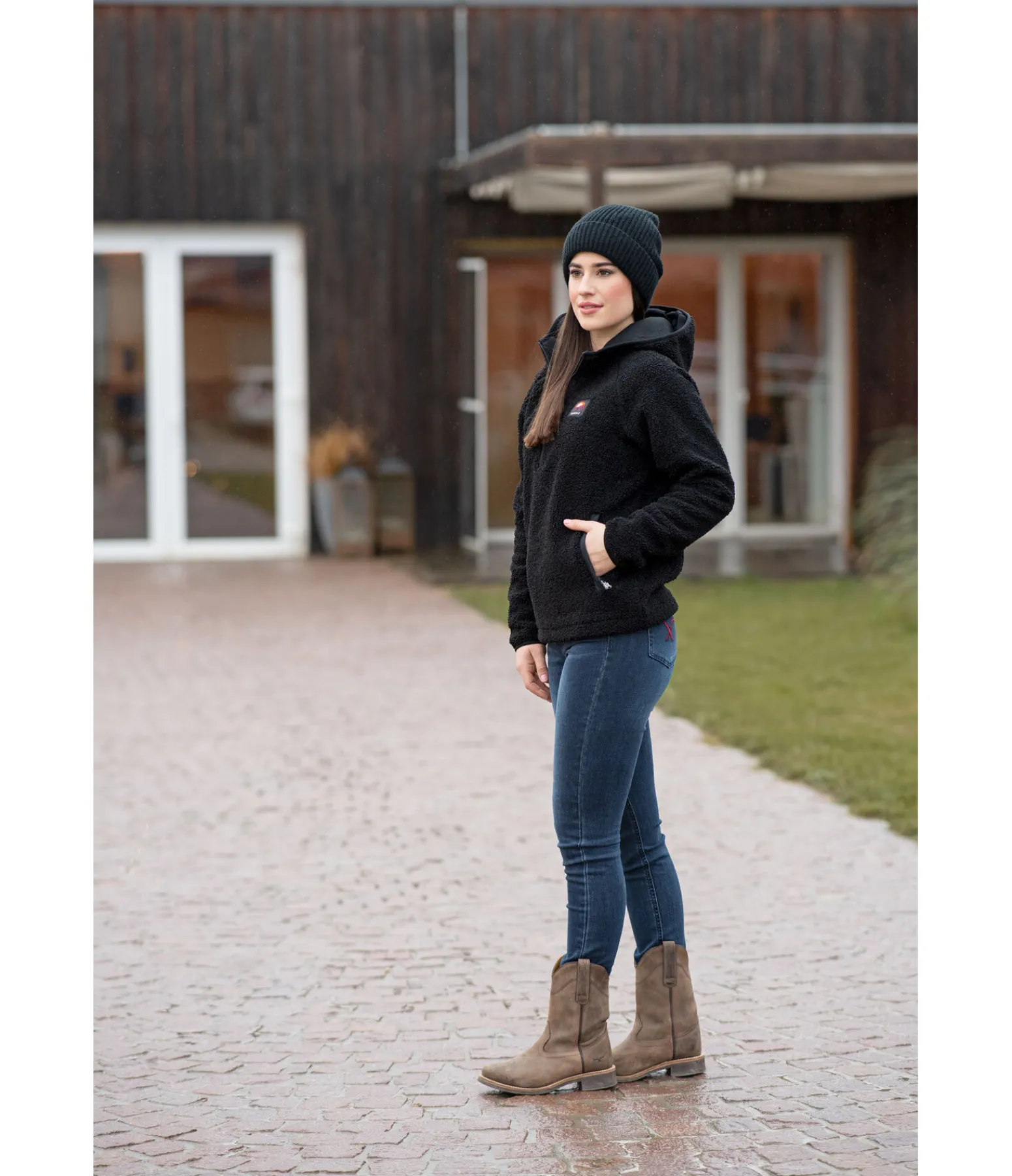 Sweat à capuche en sherpa. Matière chaude et respirante. Col zippé. 2 poches latérales zippées. Taille ajustable. Coupe-vent. 100 % polyester.