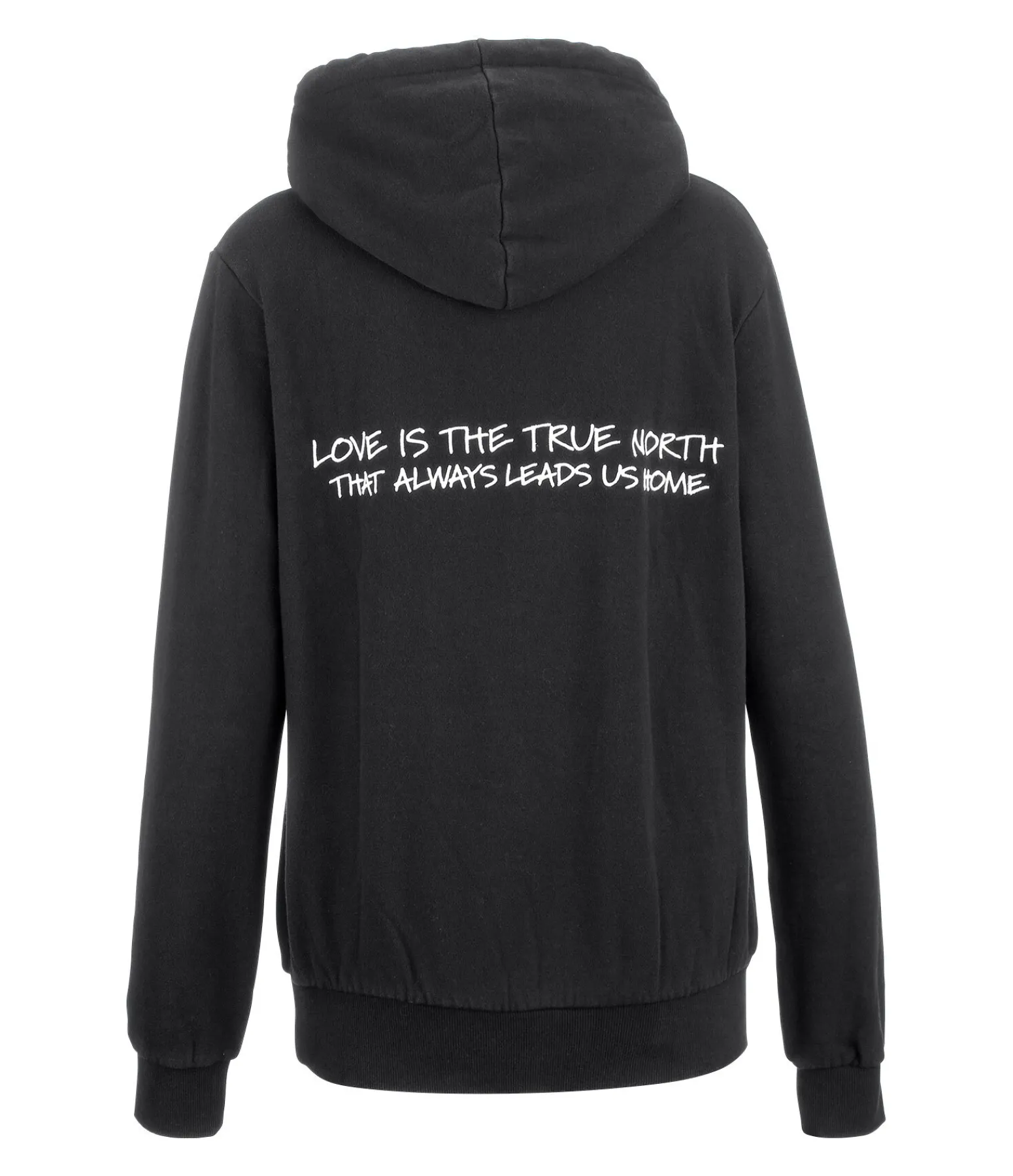 Sweat à capuche. Coupe oversize. Poche kangourou zippée pour garder ses effets personnels en toute sécurité. Capuche ajustable par cordon de serrage torsadé en coton avec extrémités en cuir synthétique. Motif boussole brodé sur la poitrine. Finition en bord-côte sur le bas des manches et l’ourlet. Intérieur molletonné doux. 100 % coton.