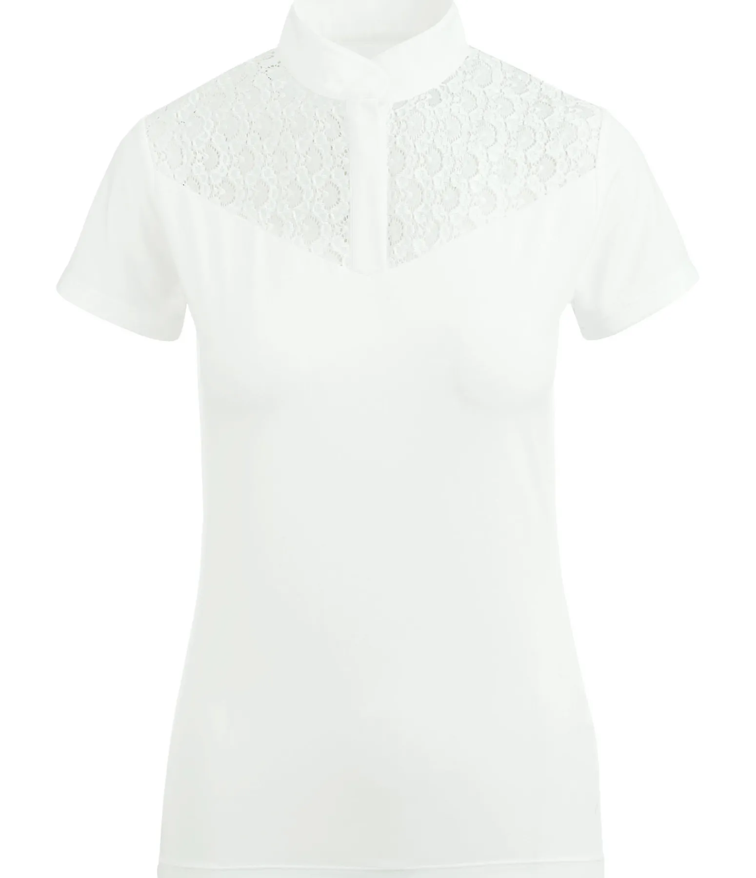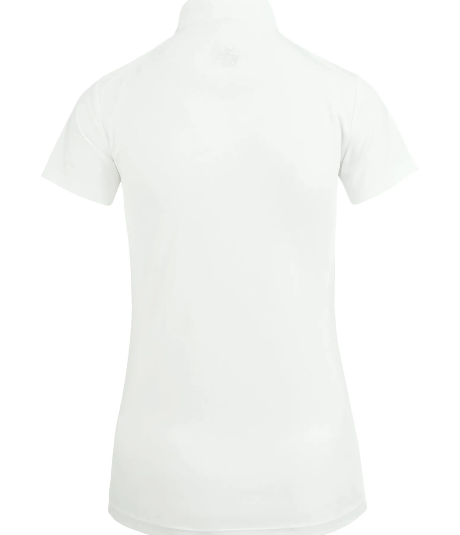 T-shirt de concours technique avec patte de boutonnage dissimulée. Col montant. Empiècement en dentelle. Matière douce, très extensible, respirante à séchage rapide. Boutons argentés. Logo Felix Bühler métallisé discret dans le haut du dos. 88 % polyester, 12 % élasthanne, dentelle : 92 % polyamide, 8 % élasthanne.