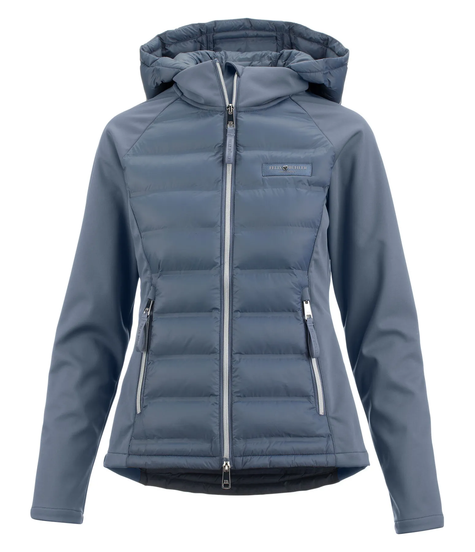 Veste d’équitation bi-matière technique. Matelassage doux avec coutures thermosoudées et garnissage léger en imitation duvet. Côtés et manches raglan en softshell extensible. Col montant avec capuche matelassée amovible grâce à une fermeture à glissière. Bouton-pression pour fixer la capuche dans le dos. Fermeture à glissière double sens avec sous-patte et protège-menton. Deux poches latérales zippées. Badge du logo sur la poitrine. 100 % nylon. Softshell et garnissage en imitation duvet 100 % polyester.