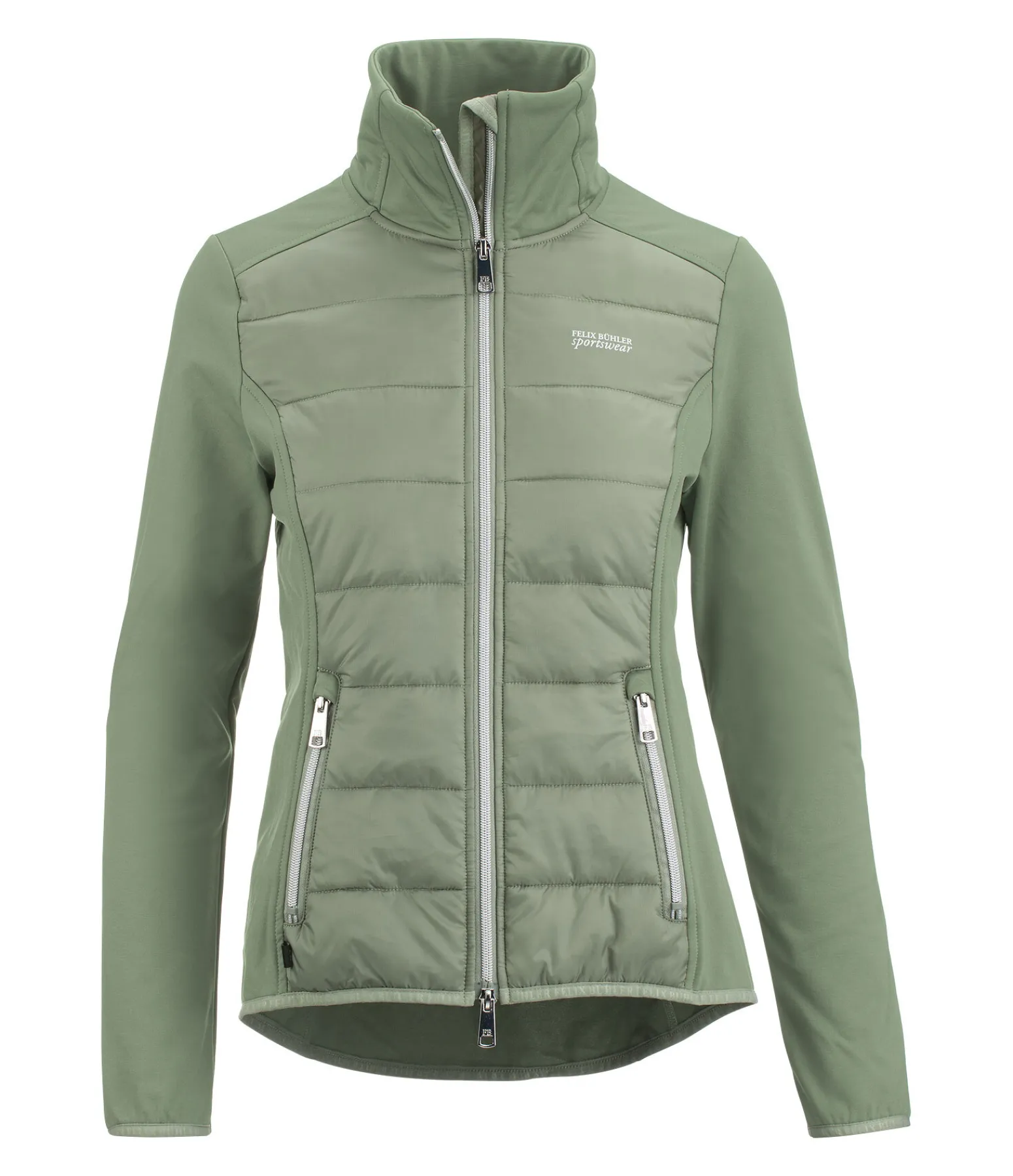 Alliance sportswear entre le nylon résistant légèrement matelassé à l’avant et le tissu stretch Performance très extensible. Le stretch est très respirant, permet un ajustement parfait et une liberté de mouvement optimale en selle. Col montant, fermeture à glissière double sens avec sous-patte et protège-menton. Deux poches latérales zippées. Poignets et taille élastiqués avec signature Felix Bühler. Face avant 100 % nylon ; stretch Performance 90 % polyester, 10 % élasthanne.