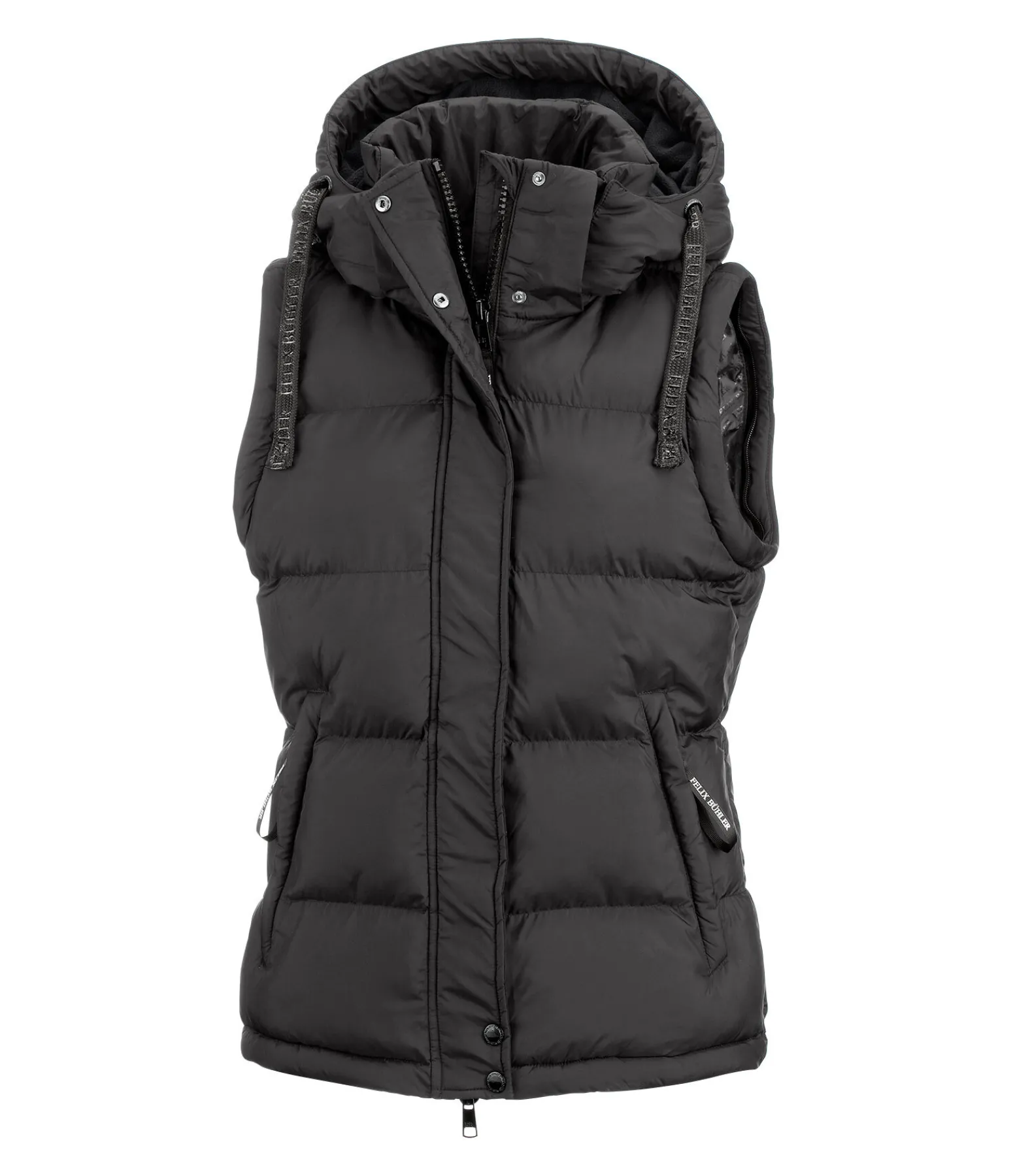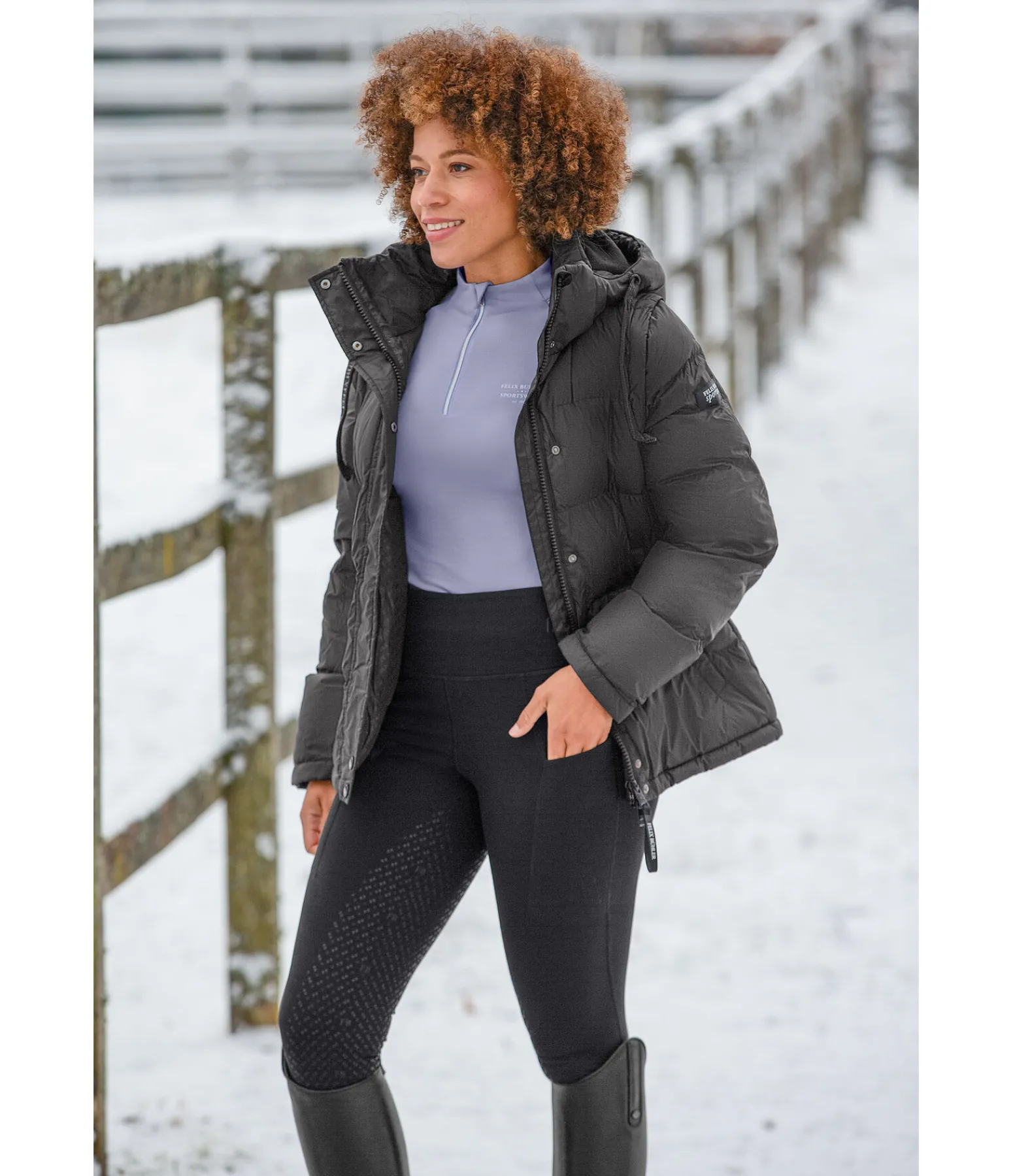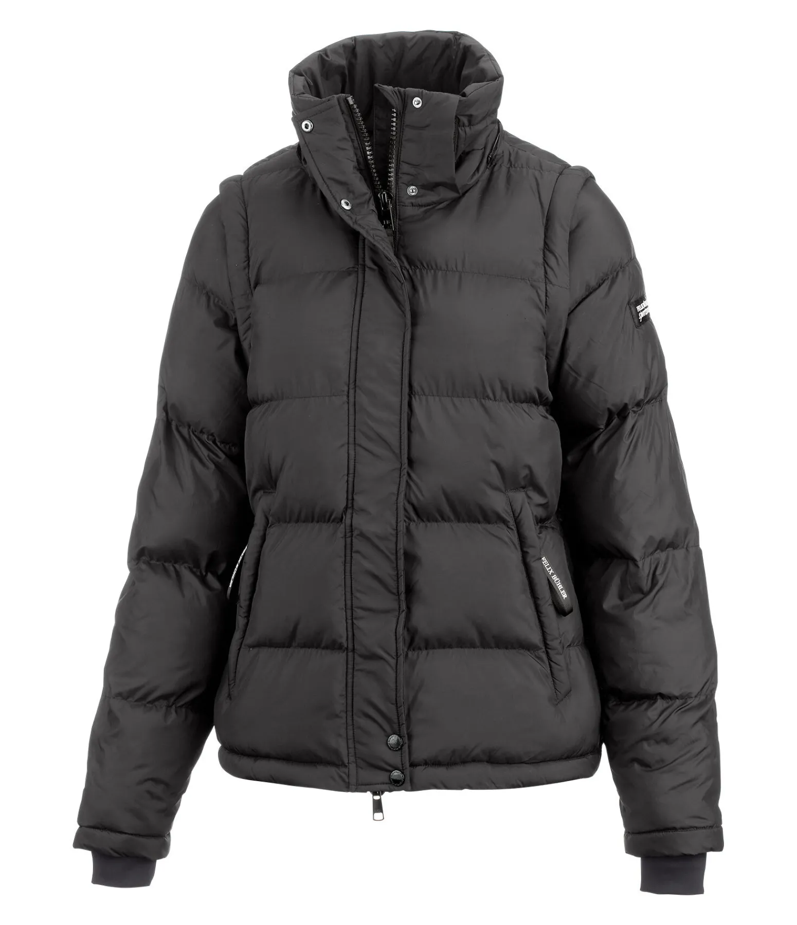 Une veste et un gilet en une seule pièce ! Veste d’équitation chaude avec manches amovibles zippées. Garnissage doux imitation duvet. Col montant. Capuche doublée en polaire, amovible et ajustable par cordon de serrage. Bouton-pression pour fixer la capuche dans le dos. Fermeture à glissière double sens dissimulée. 2 poches avant doublées en polaire, zippées et dissimulées. Badge Felix Bühler sur le bras. Finition en bord-côte sur le bas des manches. Taille ajustable par cordon de serrage. 100 % polyester.