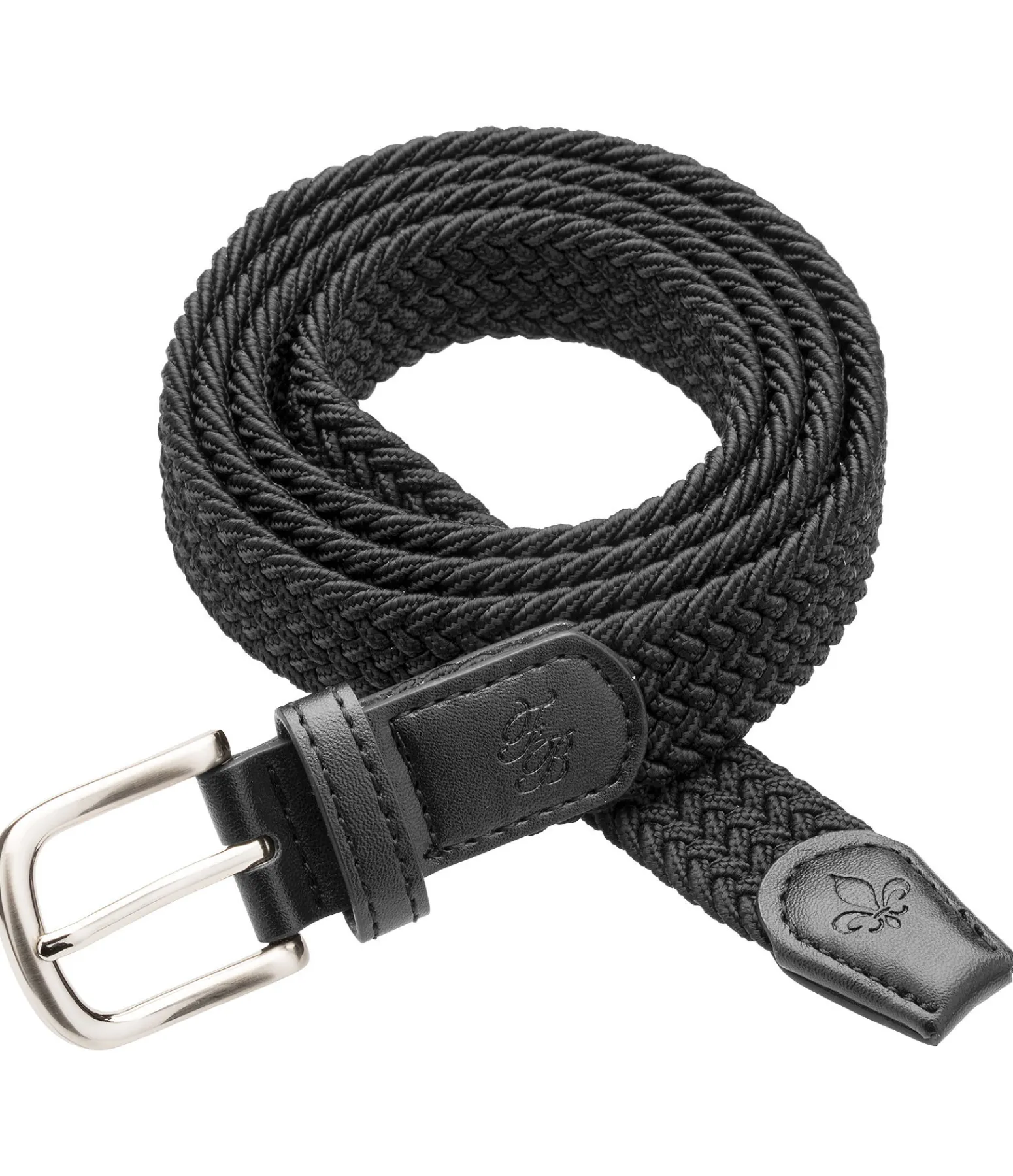 Ceinture élastique fine (largeur 2,5 cm). Boucle argentée avec finitions en synthétique. Réglable en continu. 100 % polyester. XS (85 cm), S (95 cm), M (105 cm), L (115 cm), longueur mesurée de l’ardillon à l’extrémité de la ceinture.