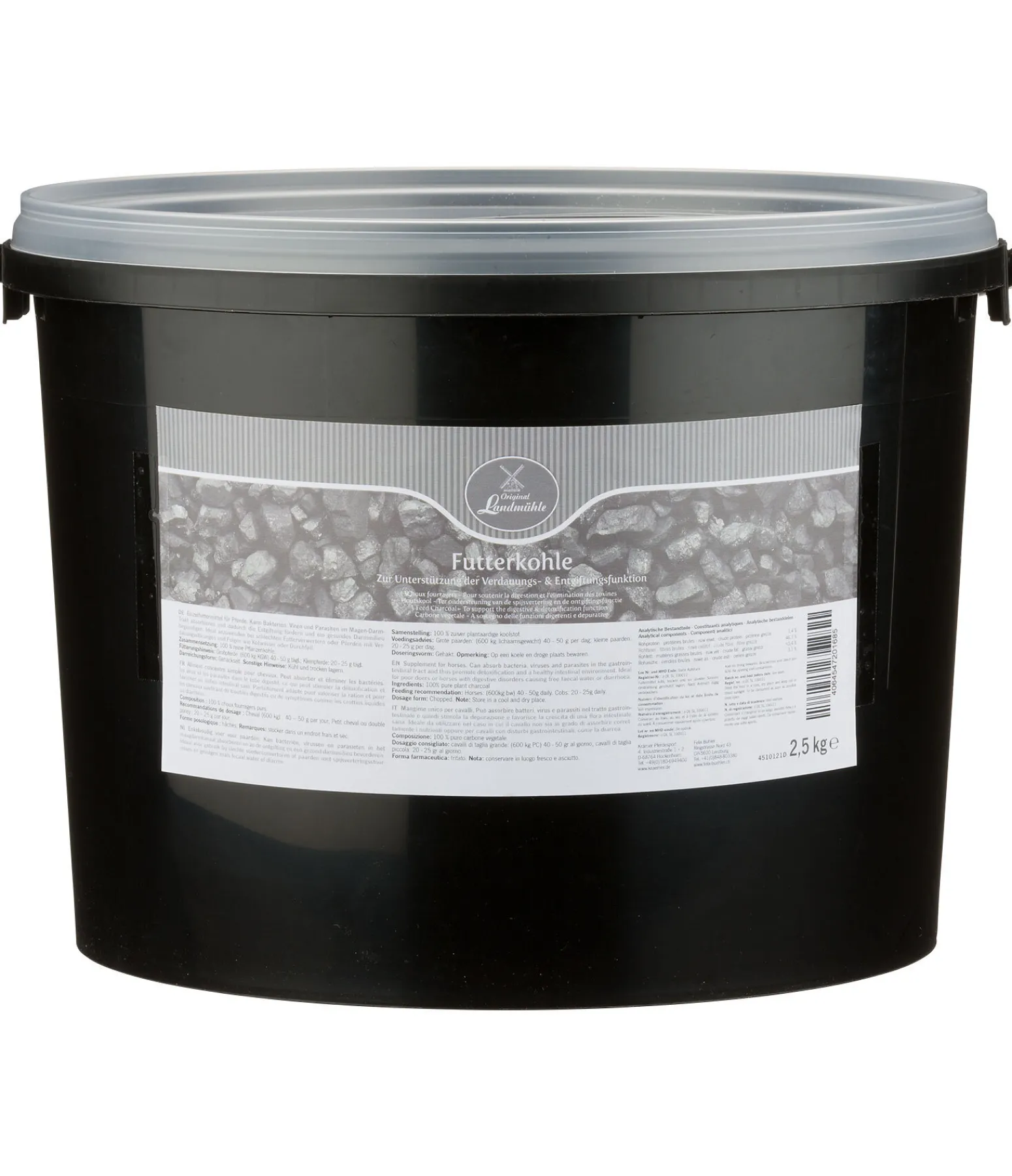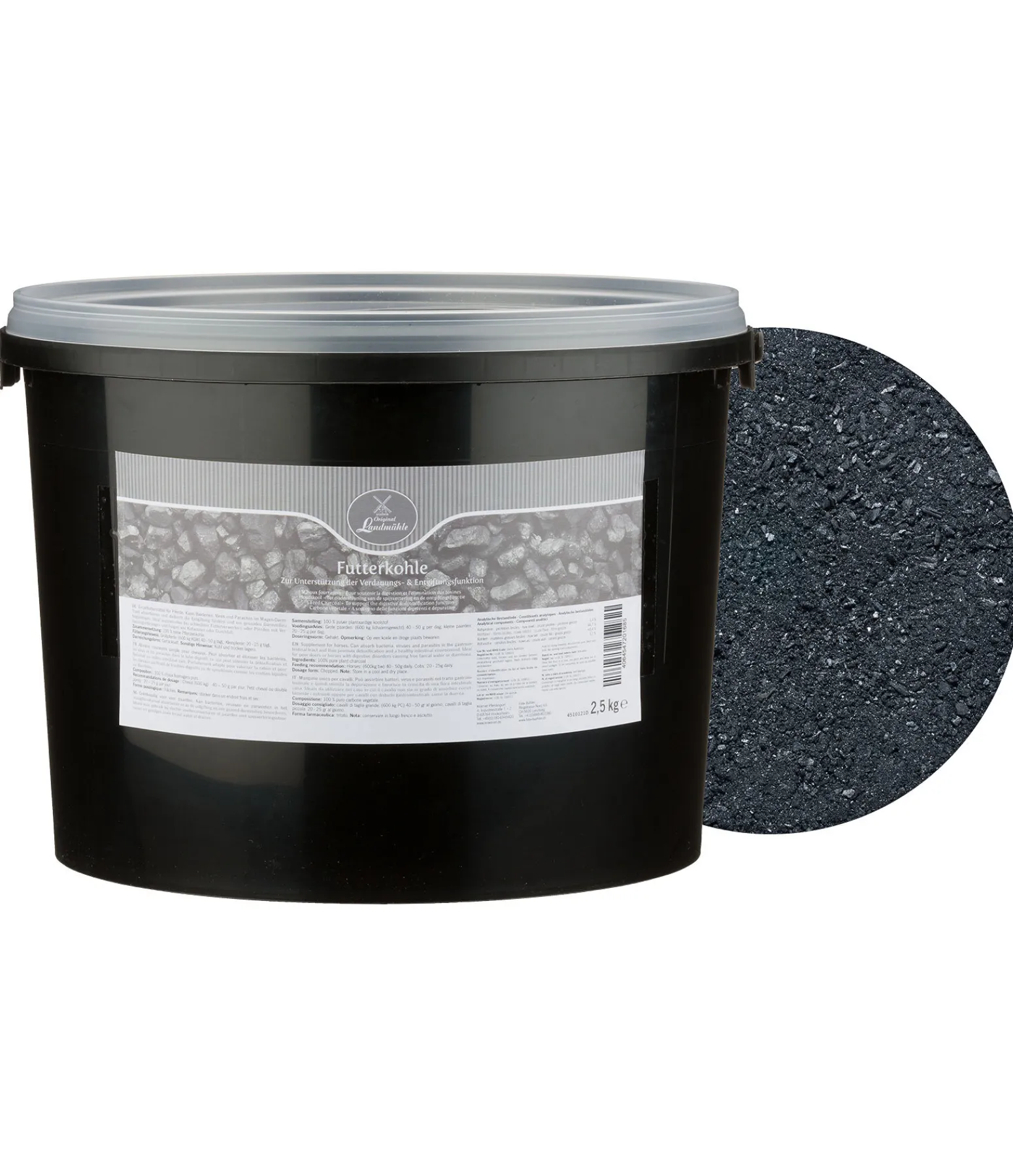 Matière première pour aliments des chevaux. Charbon végétal grossièrement moulu pour soutenir la flore intestinale naturelle.