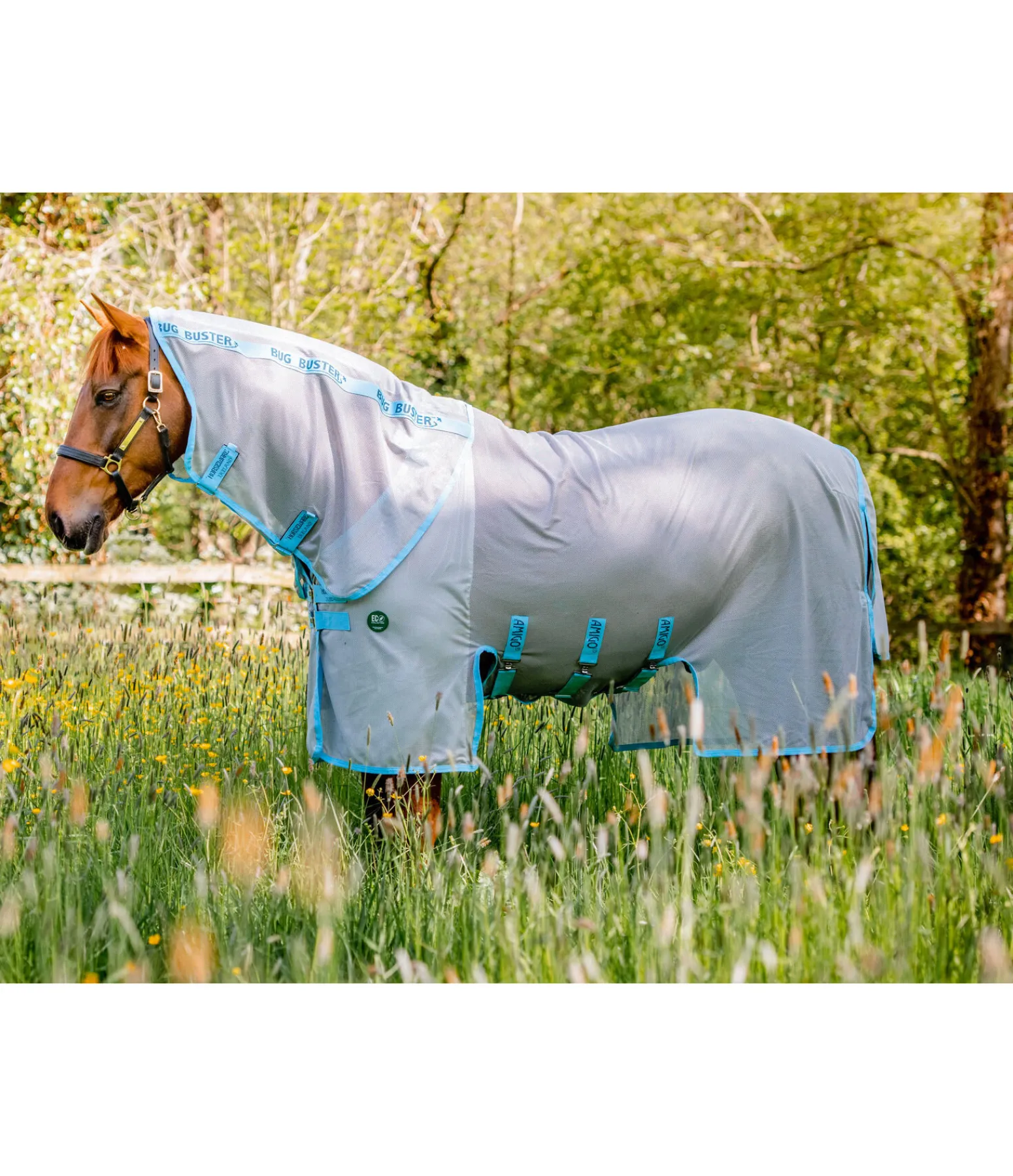 Chemise anti-mouches avec couvre-cou amovible. Matière respirante et résistante. Fabriquée à partir de plastique recyclé. Coupe extra-longue au niveau des membres et généreux rabat de queue pour une protection maximale du corps. Fermeture de poitrail avec deux crochets en T et rabat ventral avec trois crochets en T. Doublure satinée protégeant la robe au niveau de la crinière, des épaules et du rabat de queue pour éviter la casse des crins. 100 % polyester recyclé.