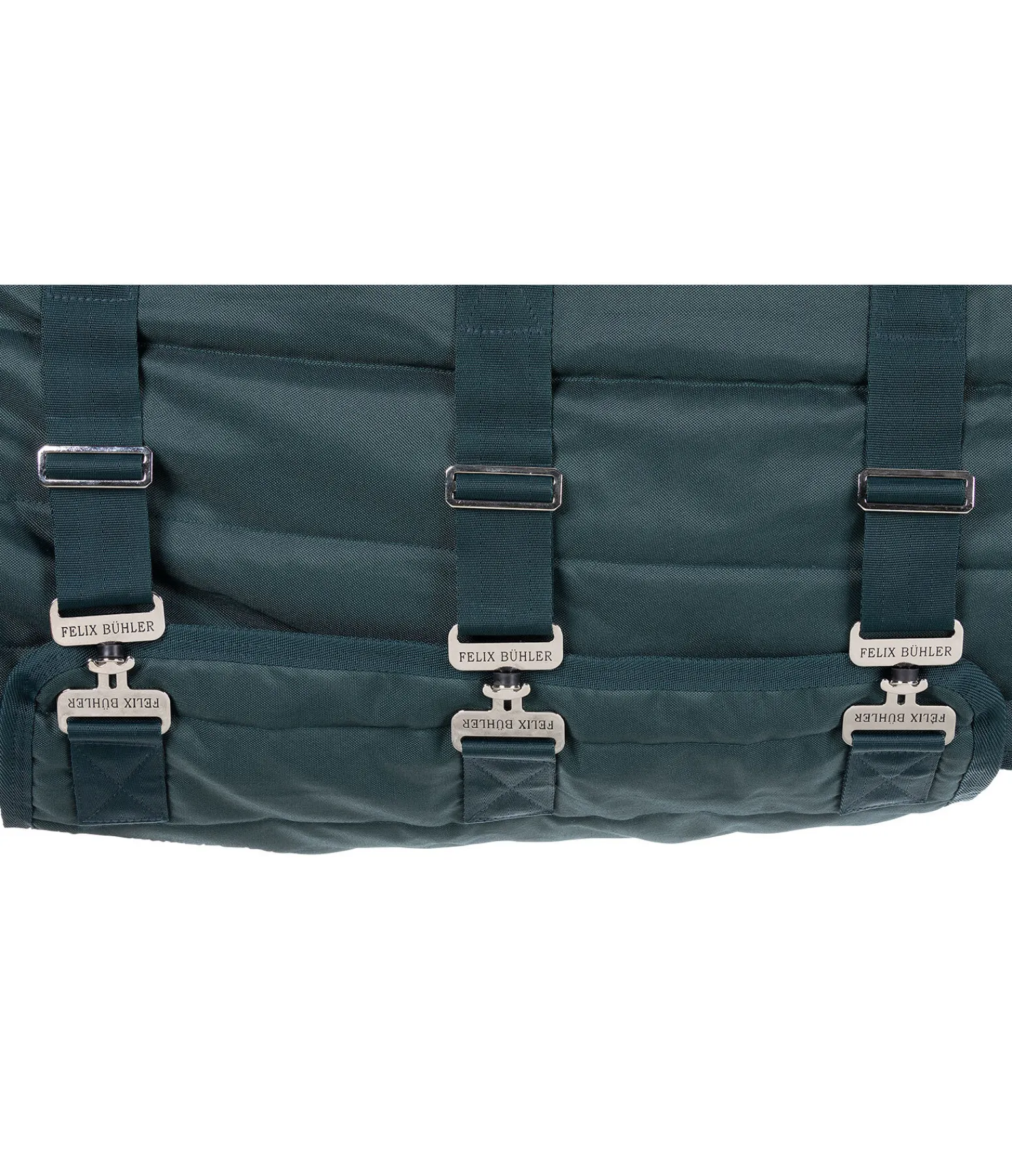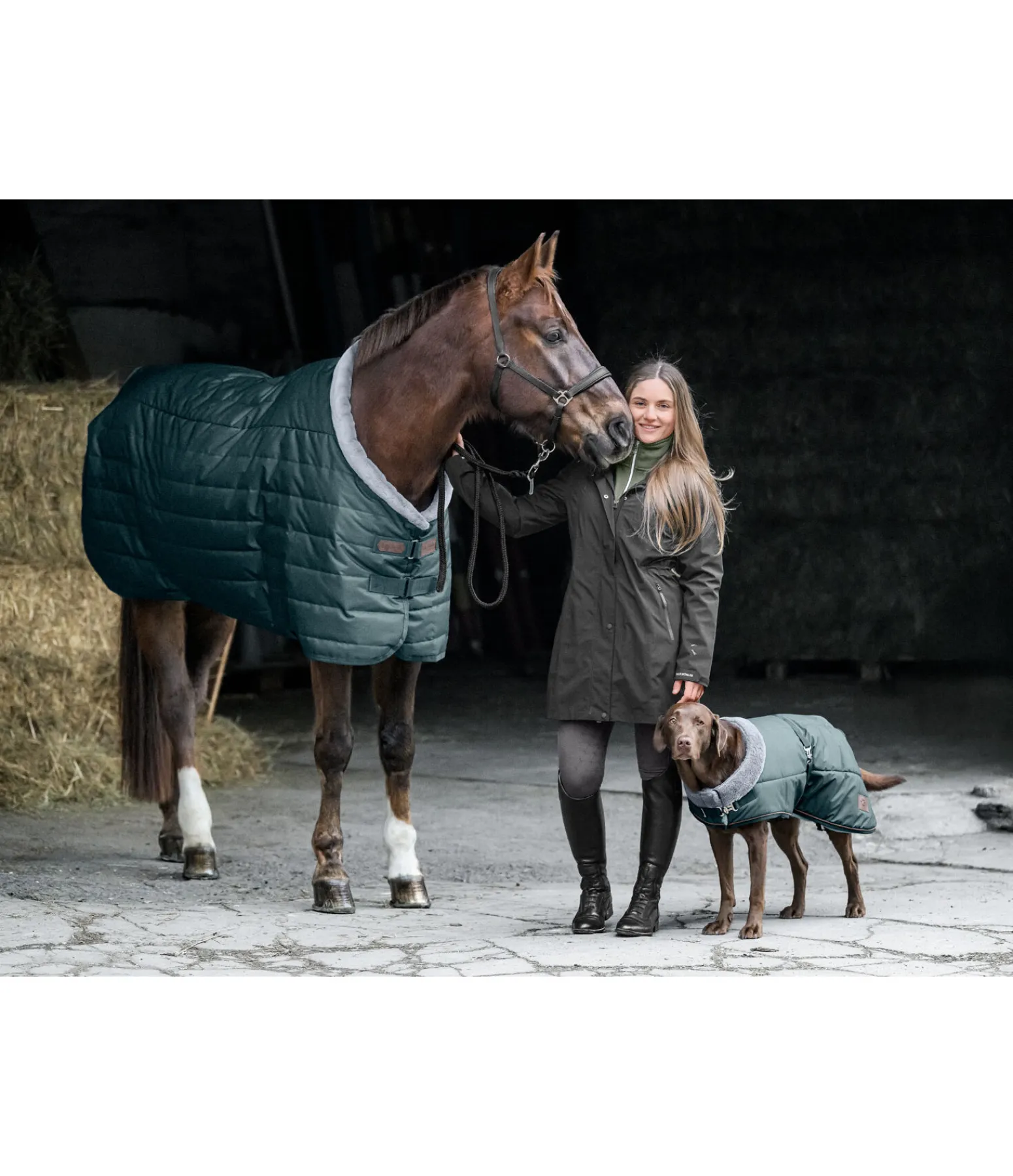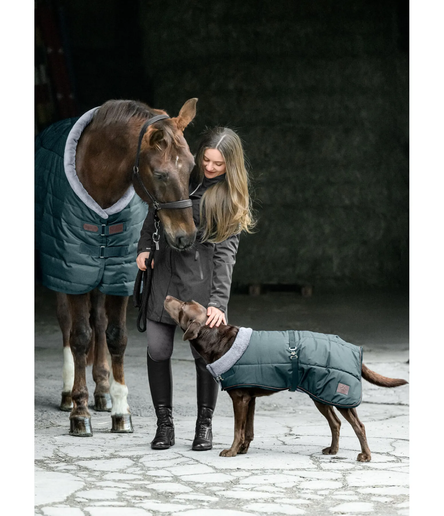 Chemise d’écurie très élégante, qui offre un protection complète tout en confort grâce à son large rabat ventral. La matière extérieure est respirante et solide (600 deniers). Les particularités de cette chemise sont son superbe col et sa doublure intérieure en polaire Teddy douillette le long de la sensible ligne du dos. Ils gardent ton cheval bien au chaud sans risquer la surchauffe. Pour préserver la rob et éviter casse du poil et frottements, le reste de la couverture est recouvert de tissu polyester lisse et brillant. Le grammage de 150 g permet de garder ton cheval bien au chaud pendant l’hiver et de lui assurer un agréable confort. La fermeture de poitrail avec double patte auto-agrippante dissimulée et le badge en synthétique élégamment embossé sont une magnifique touche finale sur cette chemise qui te permet de protéger ton cheval tout l’hiver. 100 % polyester.