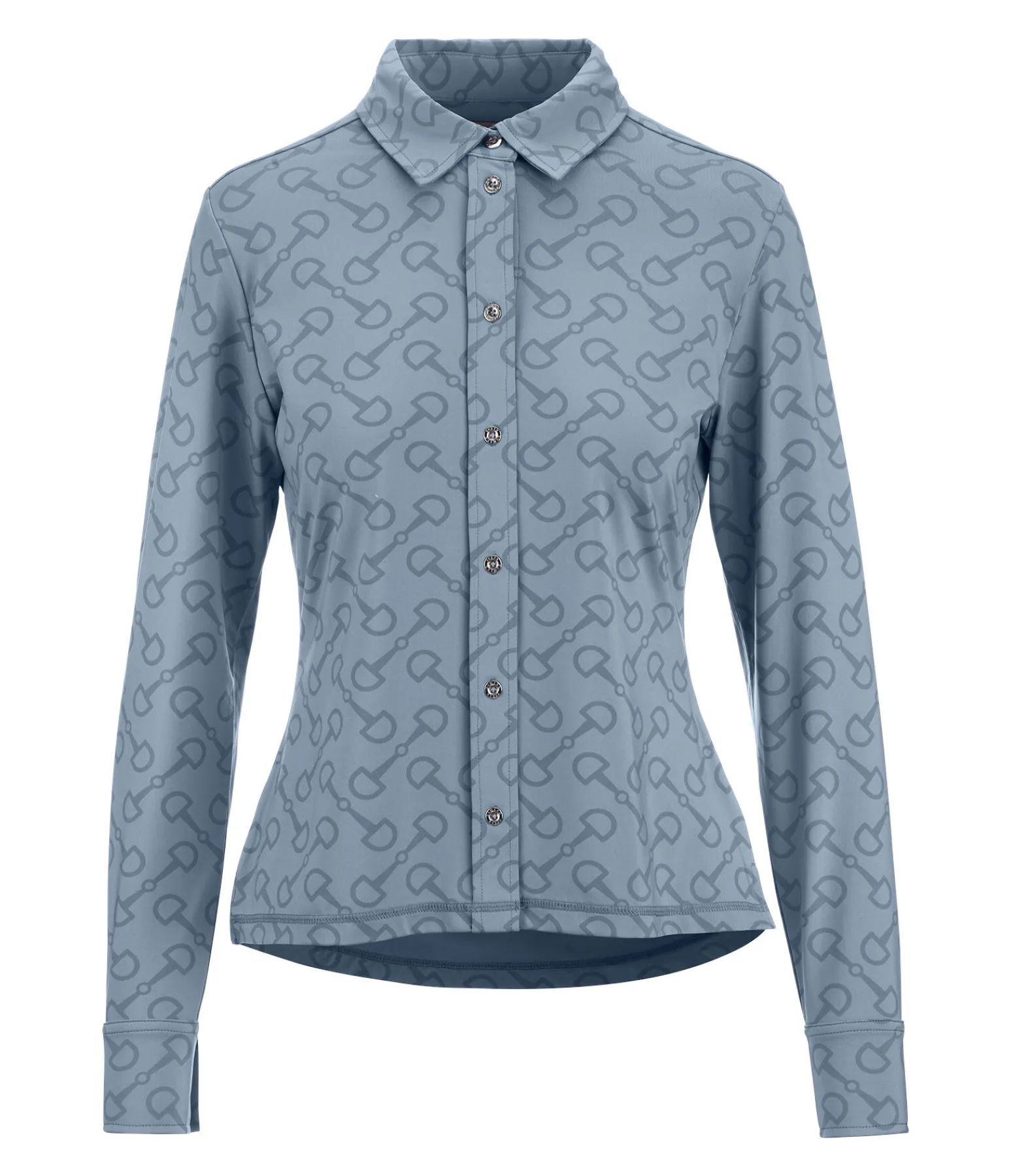 Élégante chemise extensible en matière technique respirante et à séchage rapide avec imprimé all-over à motif mors. Patte de boutonnage et boutons en bas des manches. 85 % polyester, 15 % élasthanne.