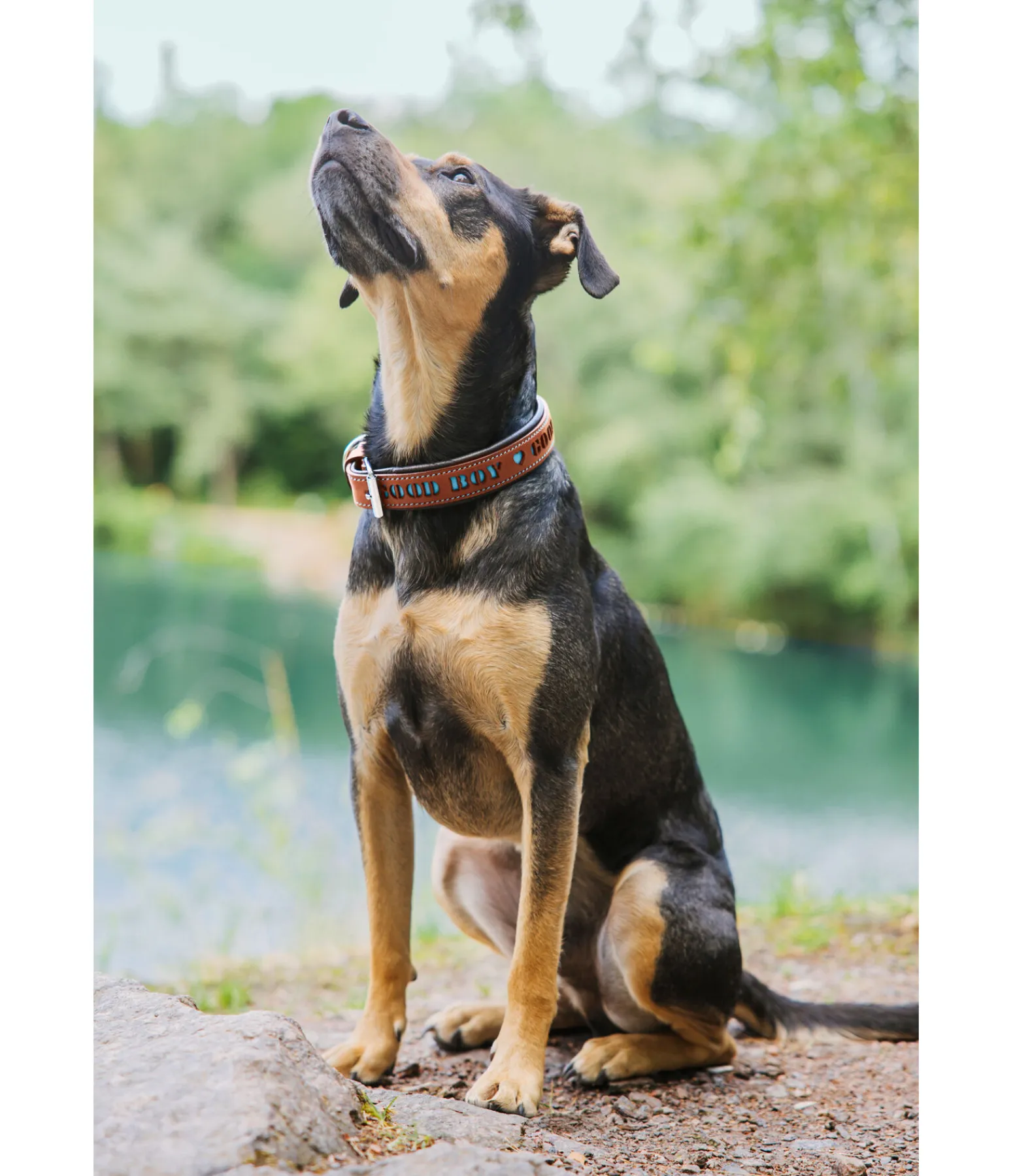 La doublure douce de ce collier entièrement en cuir véritable assure un confort optimal. Le collier se règle facilement au tour de cou du chien grâce à une boucle à ardillon. La découpe « Good Girl » ou « Good Boy » est mise en valeur par le fond coloré et les coutures assorties. Bouclerie argentée.