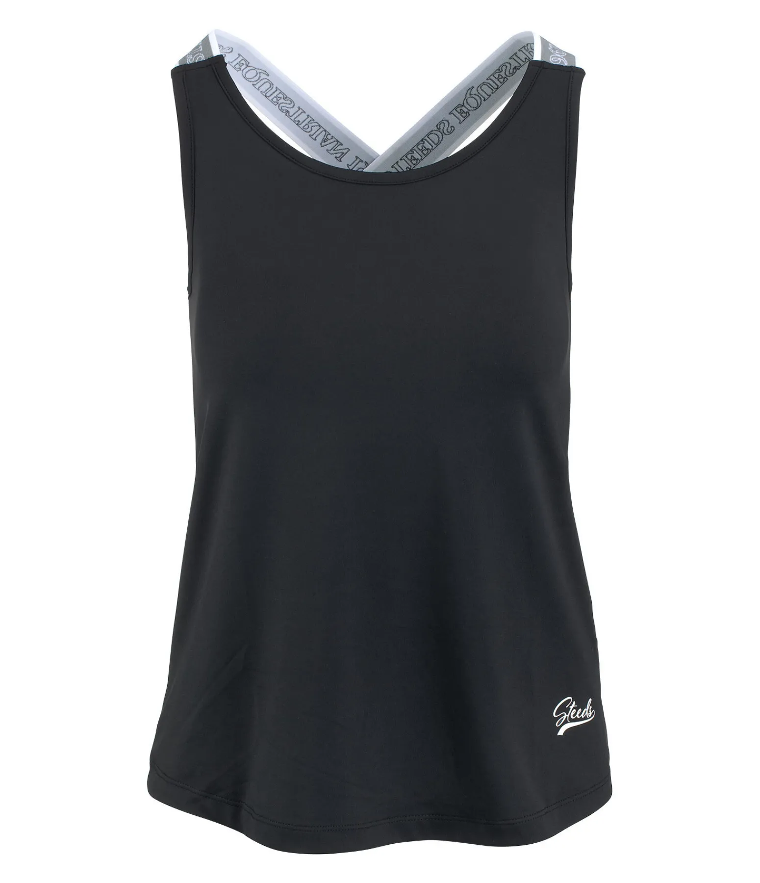 Débardeur technique sportswear. Matière extra douce et respirante. Séchage rapide. Bretelles croisées extensibles avec logo STEEDS. Coupe ample. Idéal pour les fortes chaleurs. 94 % polyester, 6 % élasthanne.