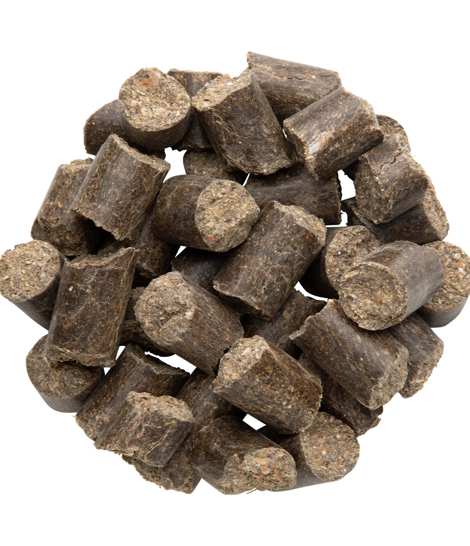 Qui ne connaît pas cette situation? Lors d’une promenade, le cheval grignote en chemin quelques feuilles des arbustes ou des branches basses qui se dressent de manière tentante. De nombreuses espèces d’arbres possèdent des feuilles inoffensives, savoureuses et très saines pour le cheval. Elles agissent comme des superaliments ! Nos friandises Original Landmühle Out of the Woods sont sans céréales et sans additifs artificiels et sont enrichies en huile végétale de qualité. Les feuilles séchées de framboisier et de rosier sont reconnues pour avoir un effet antispasmodique et relaxant. En médecine naturelle, les feuilles de framboisier et de rosier sont utilisées pour soulager les troubles gastro-intestinaux ou menstruels légers.