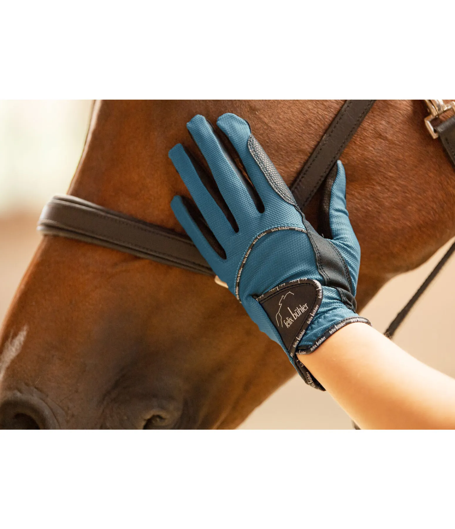 Gants d’équitation légers et tendances. Empiècements en tissu mesh élastique et respirant. Élastiqués au niveau des poignets avec patte auto-agrippante. Dessus 60 % polyester, 40 % polyuréthane. Paume 100 % nylon.