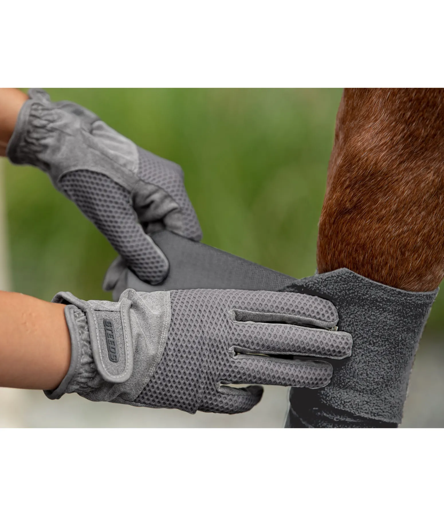 Gants d’équitation légers et extensibles en tissu structuré. Élastiqués au niveau des poignets avec patte auto-agrippante. Matière respirante. Dessus 82 % nylon, 18 % élasthanne, paume 75 % polyester, 25 % polyuréthane.