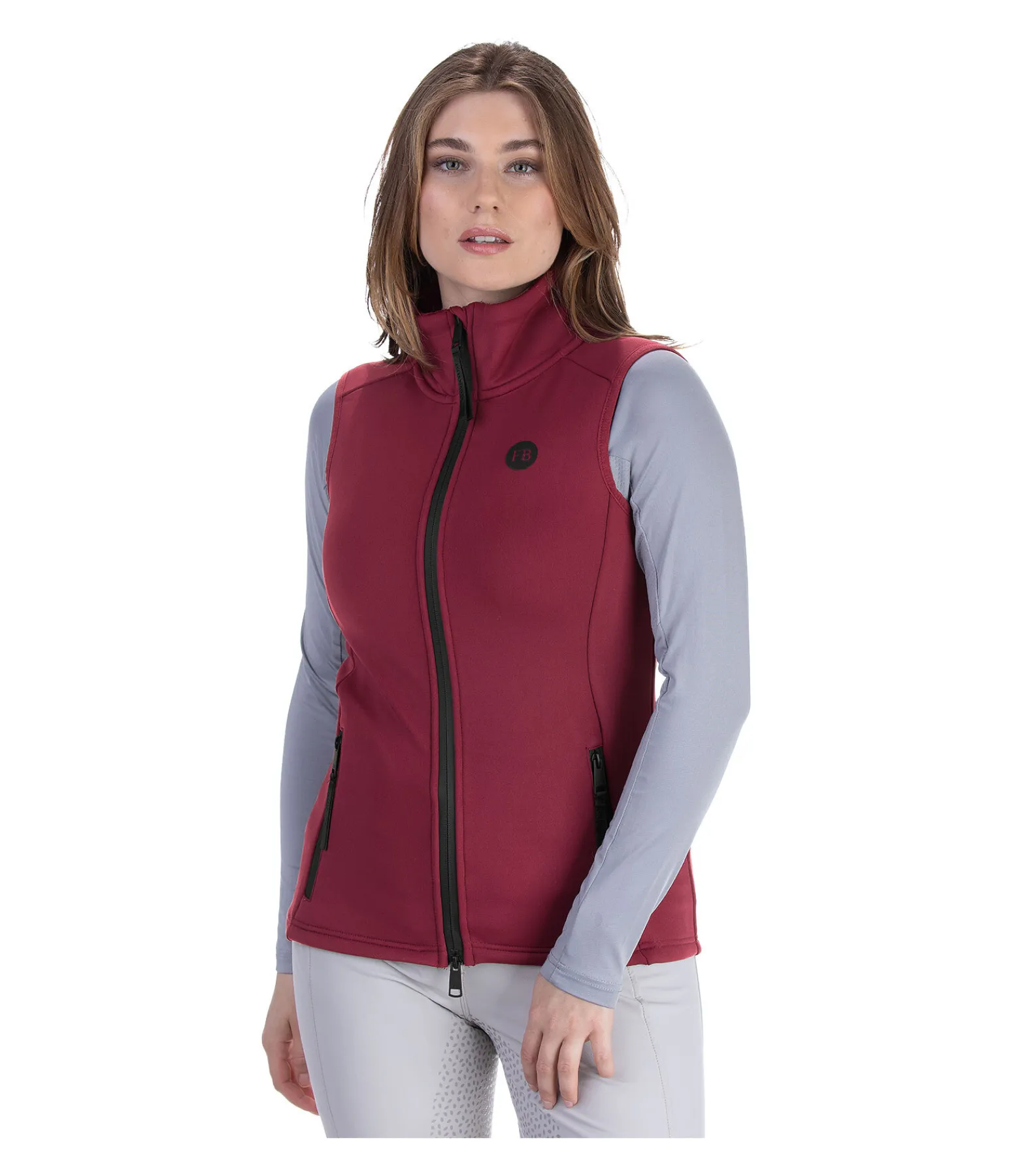 Gilet d’équitation softshell avec col montant. Matière stretch coupe-vent, respirante et extensible dans 4 directions. Intérieur molletonné. Fermeture à glissière double sens avec sous-patte et protège-menton. 2 poches avant zippées. Badge Felix Bühler sur la poitrine. Imprimé Felix Bühler à l’arrière du col. Matière extérieure 75 % polyamide, 25 % élasthanne, matière intérieure 95 % polyester, 5 % élasthanne.