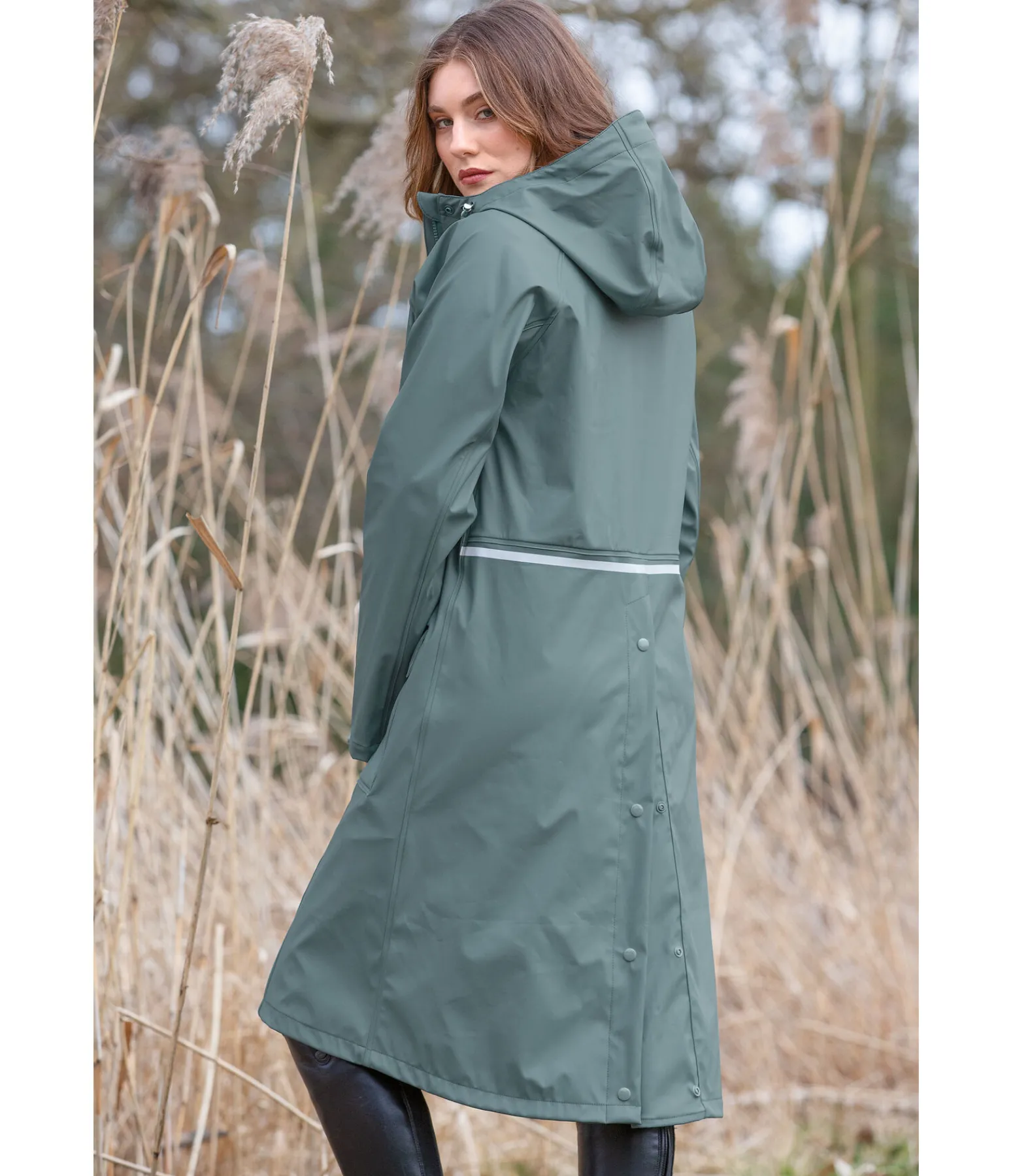 Imperméable d’équitation très long et confortable. Longue fente cavalière doublée. Capuche réglable avec système de fixation dans le dos. Imperméable (5 000 mm) et coupe-vent. Courroies de jambes réglables pour maintenir l’imperméable en place lors de la pratique de l’équitation. Fermeture à glissière double sens dissimulée avec sous-patte et protège-menton. Bas de manches réglables. 2 poches à rabat avec imprimé Felix Bühler réfléchissant. Logo réfléchissant sur la poitrine. Passepoil réfléchissant dans le dos. 100 % polyuréthane.