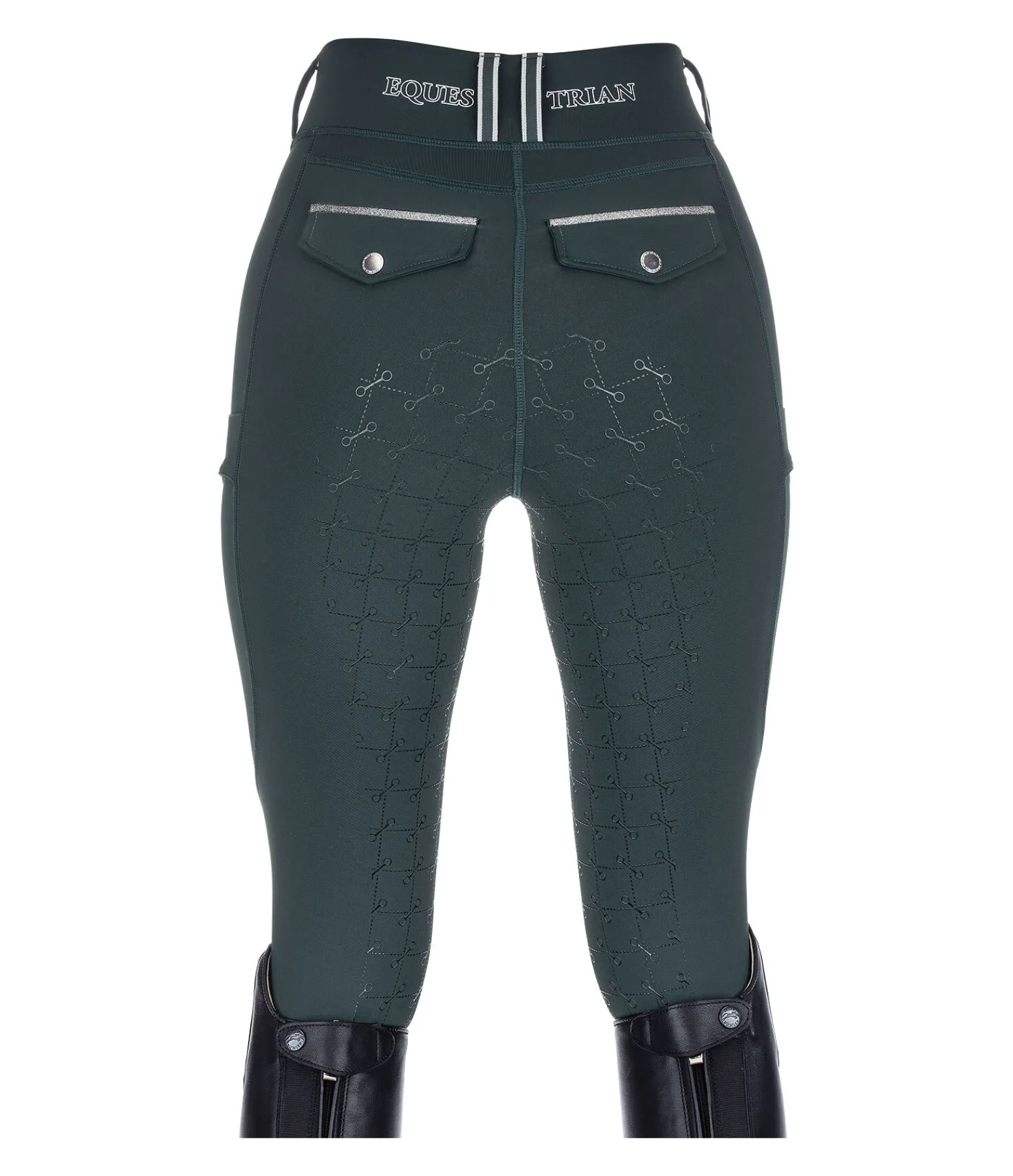 Legging d’équitation sportswear à fond intégral grip en silicone. Matière respirante de grande qualité, extensible dans 4 directions. Séchage rapide. Ceinture extra large avec passants dotés d’une bordure de couleur contrastante. 2 poches latérales pour téléphone portable. Aucune couture au niveau des genoux. Bas de jambe extensible. Imprimés Felix Bühler. 2 fausses poches arrière avec bande scintillante. 85 % nylon, 15 % élasthanne.